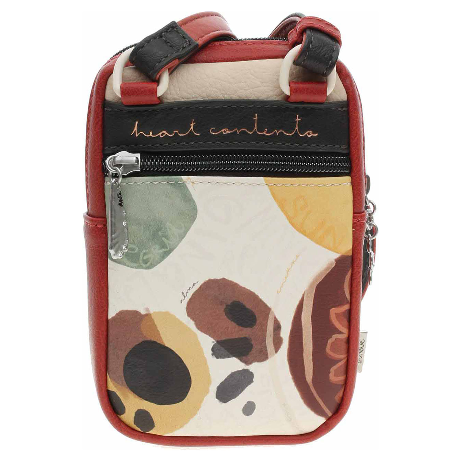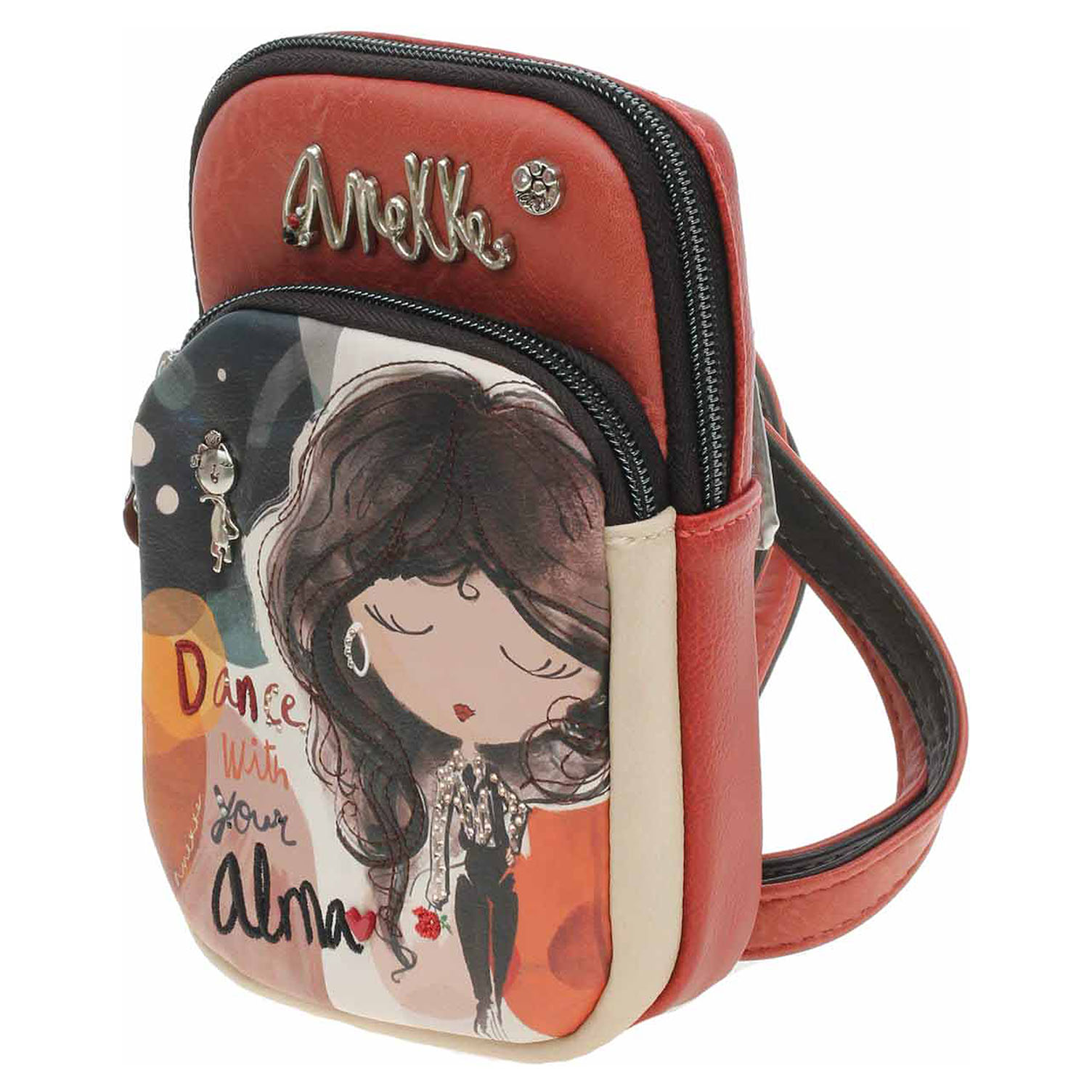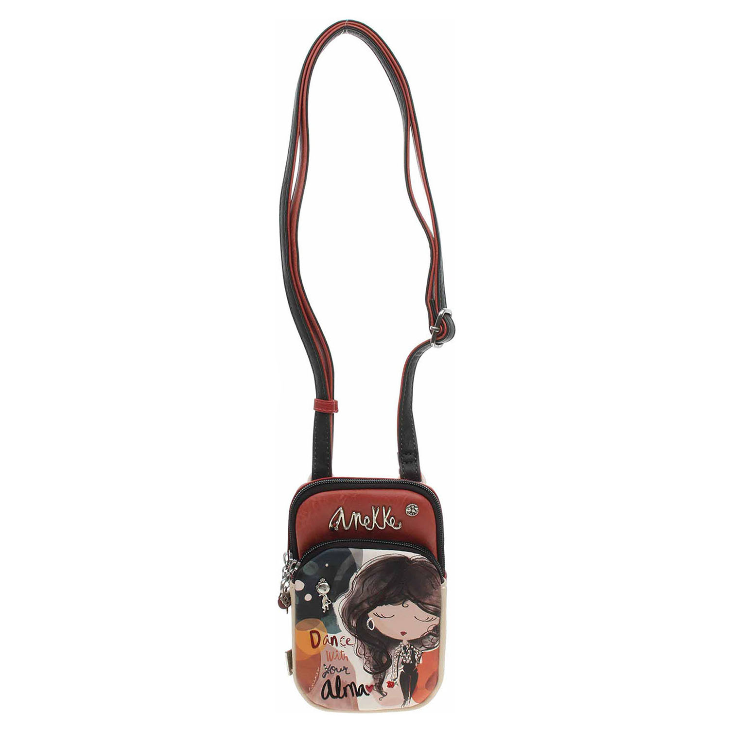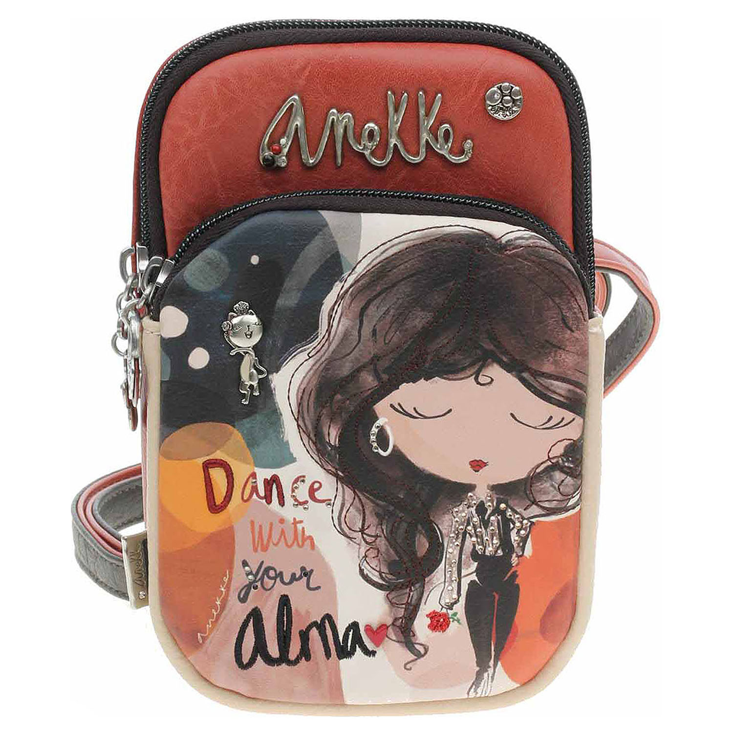 Anekke - dámská crossbody kabelka Alma se zapínáním na zip je vyrobená ze 100% polyuretanu a podšívka je ze 100% polyesteru. Na přední i na zadní straně je kapsa se zipem. Regulovatelný popruh (max délka 130 cm) se nedá odepnout. Formát A4 se nevejde. Rozměry: 12 x 19 x 5 cm. Baleno v praktickém dustbagu. Anekke - I´m eco-friendly.