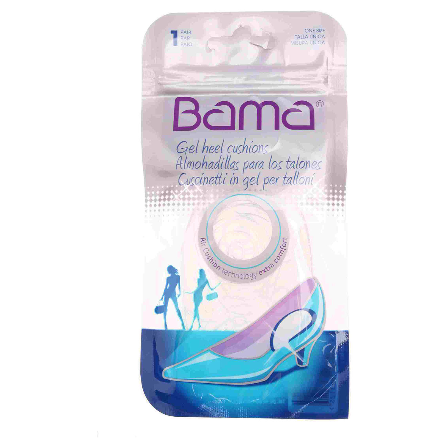 Bama - neviditelné gelové podpatěnky komfortně tlumí došlap paty ve všech druzích obuvi. Jsou zárukou toho, že se Vaše nohy i v obuvi na vysokém podpatku budou cítit příjemně. Univerzální velikost - hypoalergenní - dermatologicky testováno. Použití: stáhněte ochrannou folii na spodní straně, vložte do boty a přitlačte. Polštářek je možno po opláchnutí ve vlažné vodě (do 30°C) opakovaně použít i do jiné obuvi.