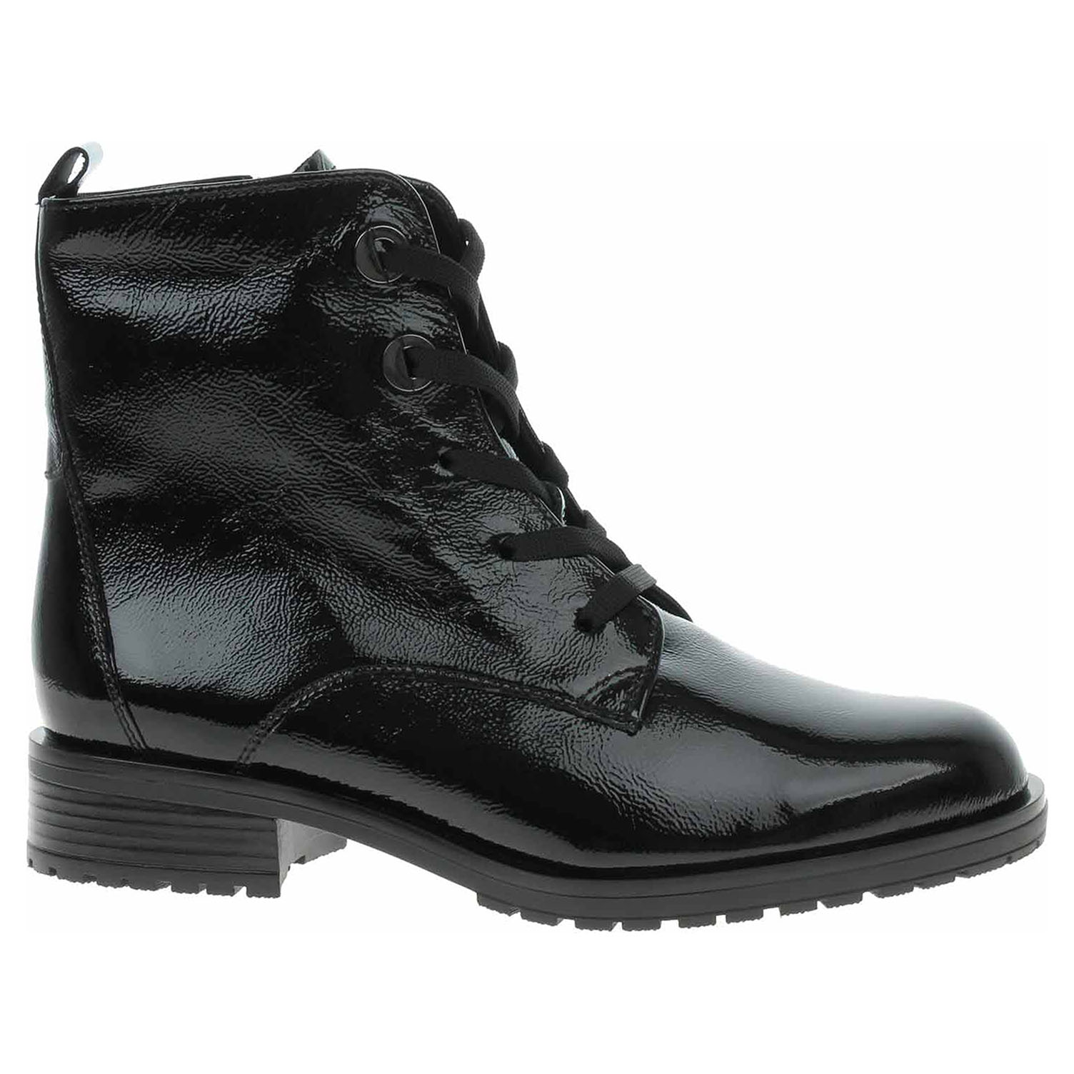 Boty Gabor Comfort - lakovaná dámská kotníková obuv šíře G se svrškem z usně a s textilní podšívkou i stélkou je na vnitřní straně vybavené zipem a na nártu šněrováním. Vyndavací stélky je možné vyndat za účelem provětrání a omytí. Značnou výhodu nabízejí vyměnitelné vložky do bot také těm uživatelům, kteří používají ortopedické vkládací stélky. Podpatek je vysoký 3,5 cm. Jedná se o obuv obzvláště pohodlné šířky G. U výrobků řady "Comfort" nabízí Gabor obuv šířky G (větší šířka). To znamená, že tato obuv poskytuje více prostoru pro prsty, bříška palců a oblast nártu a tím i více nezbytného pohodlí. Lakovaná obuv - hladký, lesklý povrch je docílen lakovou úpravou. Povrch je choulostivý na mechanické poškození, rozmáčení a mráz. Ošetřujte prostředky na lakové usně.