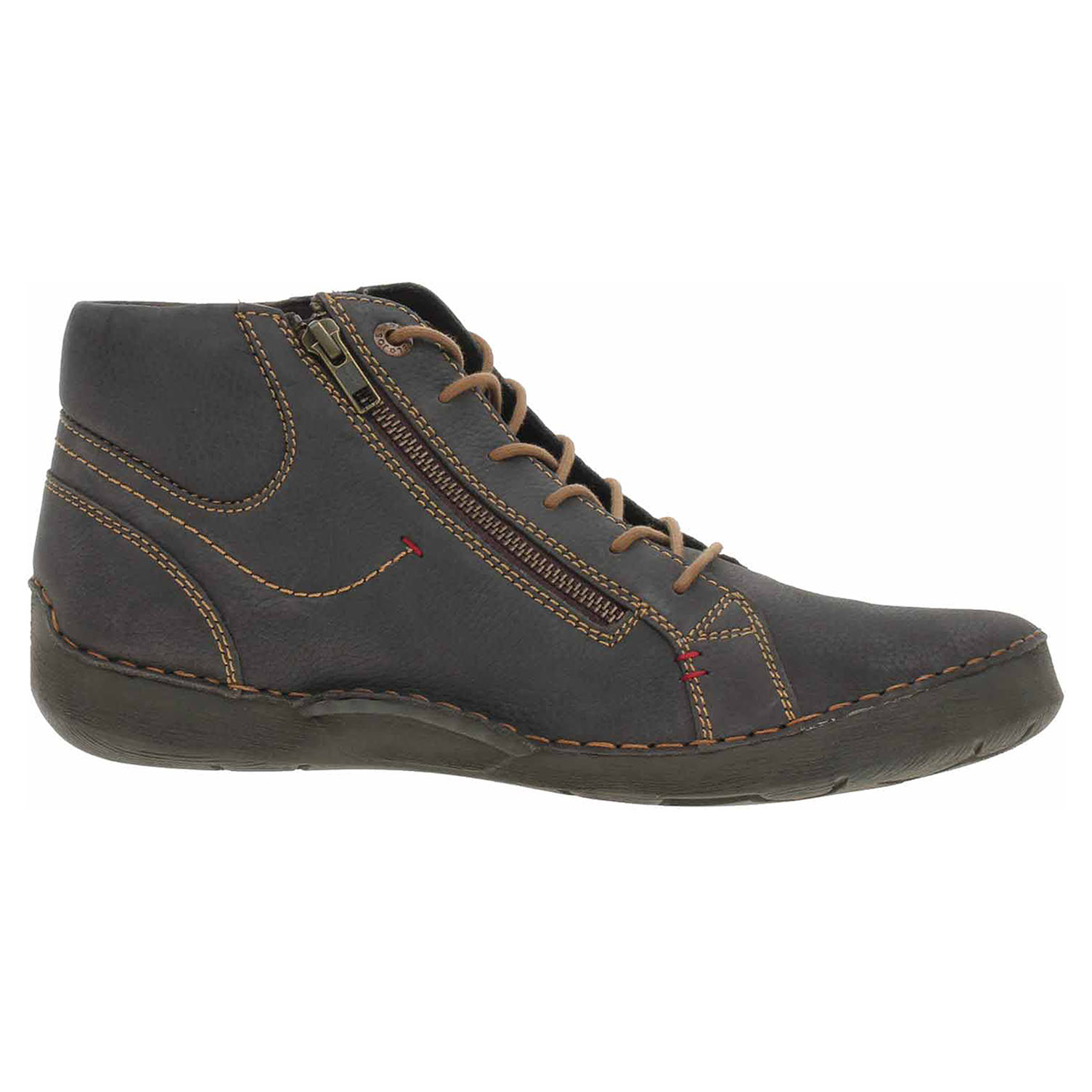 Boty Josef Seibel - flexiblová dámská kotníková obuv se šněrováním a zipem na vnější straně nártu má svršek z usně, textilní podšívku a vyndavací stélku s nášlapnou vrstvou z usně. Vyměnitelné vložky do bot je možné vyndat za účelem provětrání a omytí. Značnou výhodu nabízejí vyměnitelné vložky do bot také těm uživatelům, kteří používají ortopedické vkládací stélky. Klínek je vysoký 3,- cm. Flexiblová obuv - prošívaná podešev, obuv používejte v suchém prostředí. Při zvýšené vlhkosti může dojít k promáčení obuvi. Obuv pravidelně impregnujte nebo krémujte, zvláště pak prošívaný okraj.