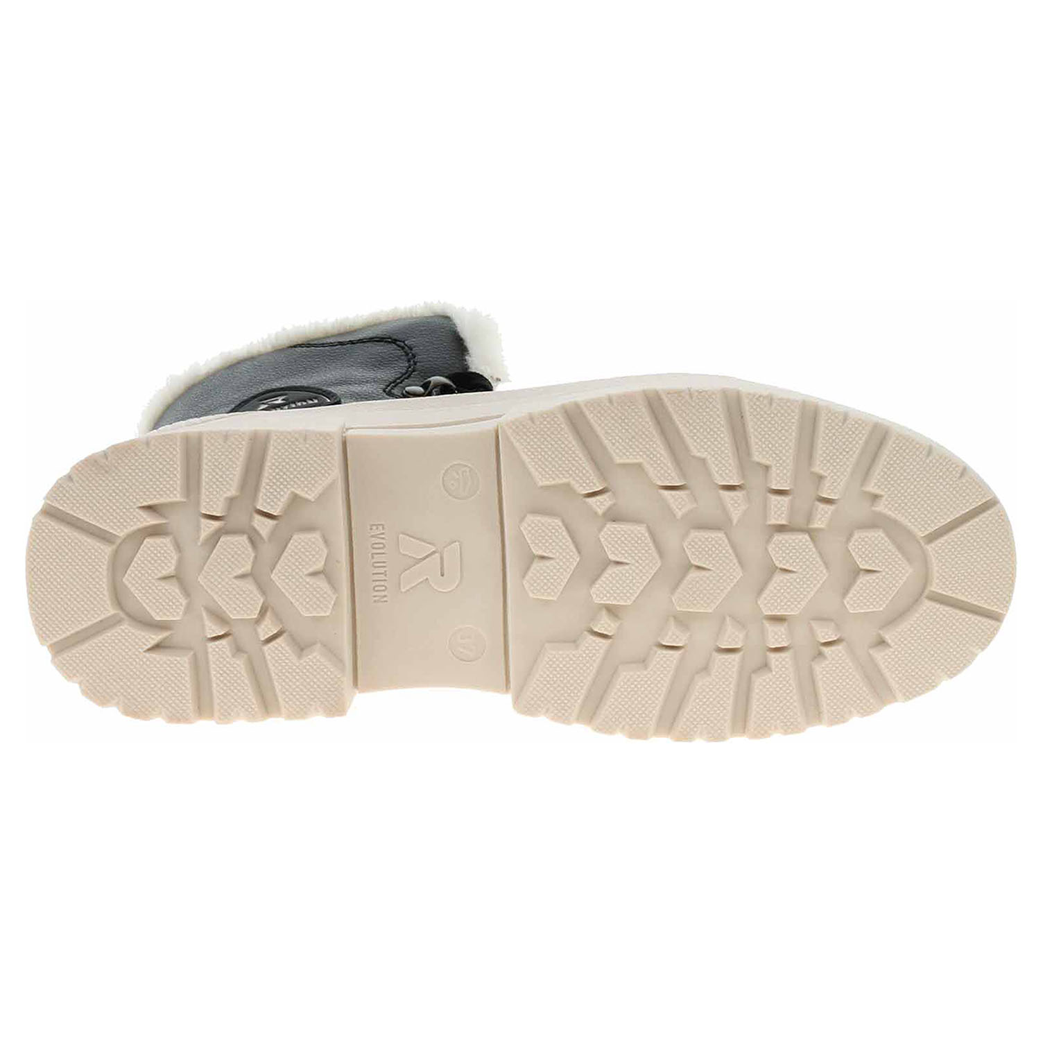 Boty Rieker - lepená dámská kotníková obuv řady R-EVOLUTION se svrškem z usně a s podšívkou kombinovanou jehněčí kožešina/střižní ovčí vlna je vybavená vyndavací stélkou Walk Warm z paměťové pěny (složení: vlněná nášlapná vrstva, termoizolační fólie a patní absorbér), kterou můžete vyjmout, vyměnit nebo vyvětrat. Pohodlné nazouvání zajišťuje zip na vnitřní straně a šněrování na nártu. Rieker REVOLUTION je nová řada moderní sportovní obuvi s obrovským důrazem na použité technologie a na komforní pohodlí i při celodenním nošení. Podešev je flexibilní a díky systému Antistress skvěle tlumí nárazy a otřesy. Podpatek je vysoký 4,- cm a platforma je vysoká 2,5 cm. Lepená obuv - pevnost lepeného spoje může být negativně ovlivněna promáčením nebo propocením, event. opakovaným používáním nedostatečně vysušené obuvi. Při neopatrné chůzi může dojít k mechanickému uvolnění lepeného spoje - ukopnutí.