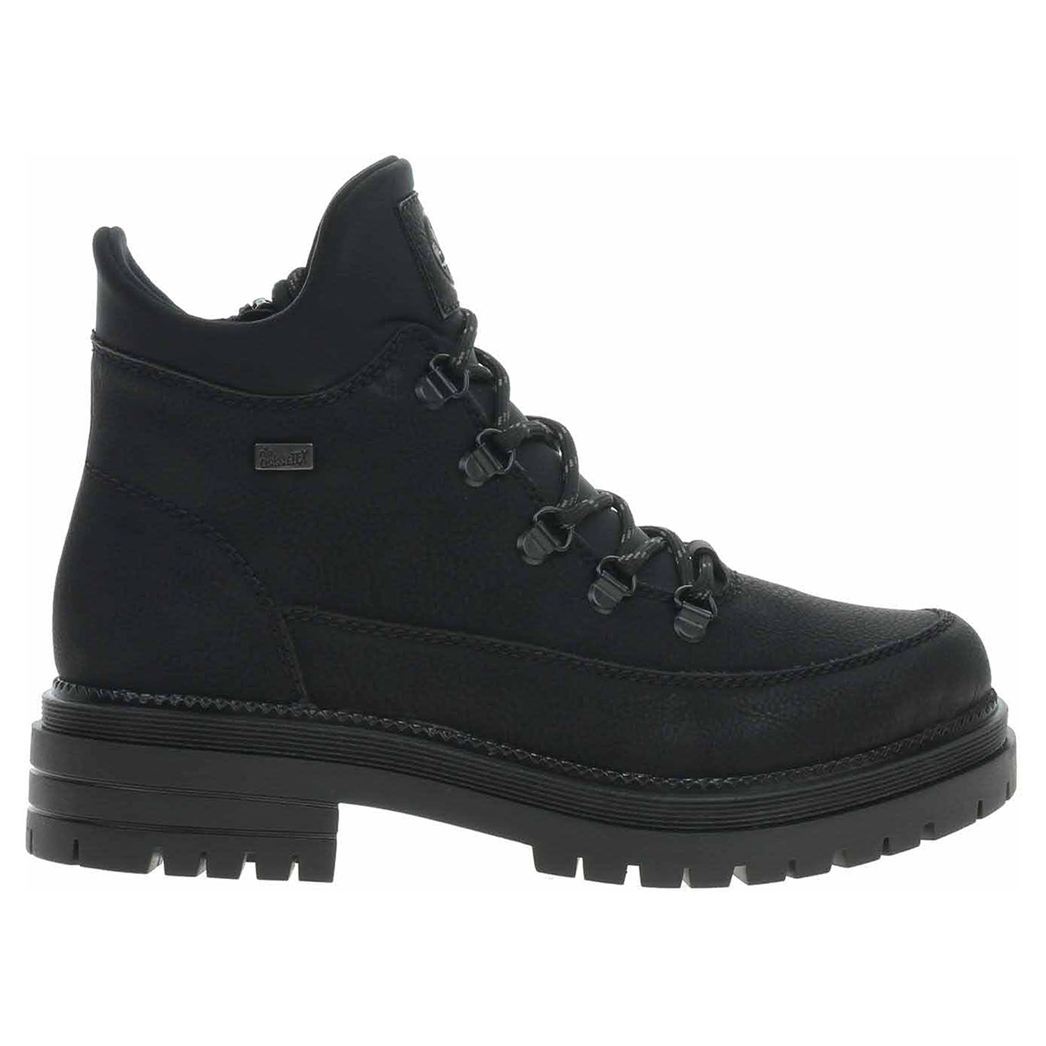 Boty Rieker - lepená dámská kotníková obuv se svrškem kombinovaným syntetika/textil a s textilní stélkou je vybavená vodoodpudivou membránou RiekerTex a zipem na vnitřní straně. Obuv je vyteplená textilní podšívkou s jemným chloupkem. Podpatek je vysoký 4,5 cm a platforma je vysoká 2,5 cm. Podešev je flexibilní a díky systému Antistress skvěle tlumí nárazy a otřesy. Lepená obuv - pevnost lepeného spoje může být negativně ovlivněna promáčením nebo propocením, event. opakovaným používáním nedostatečně vysušené obuvi. Při neopatrné chůzi může dojít k mechanickému uvolnění lepeného spoje - ukopnutí.