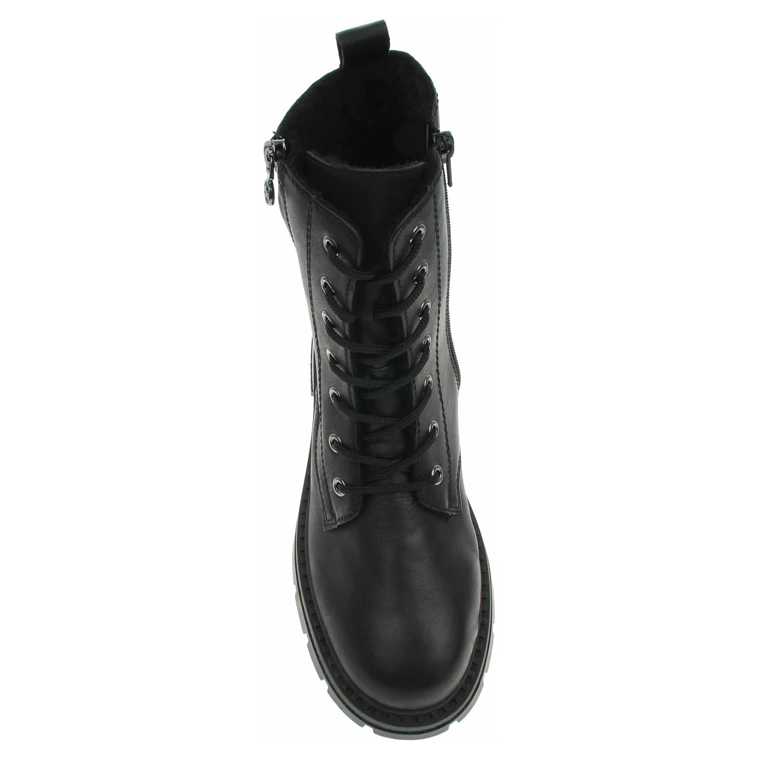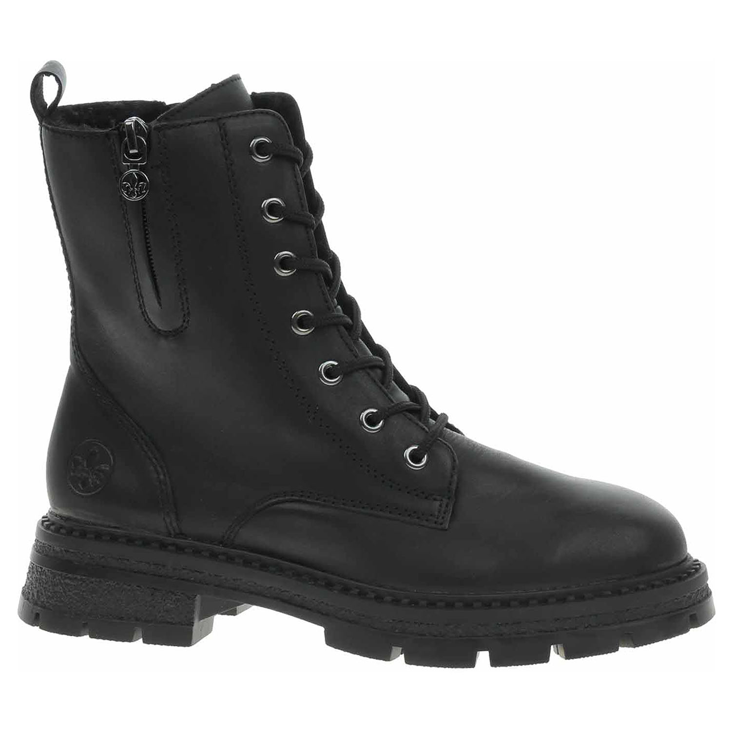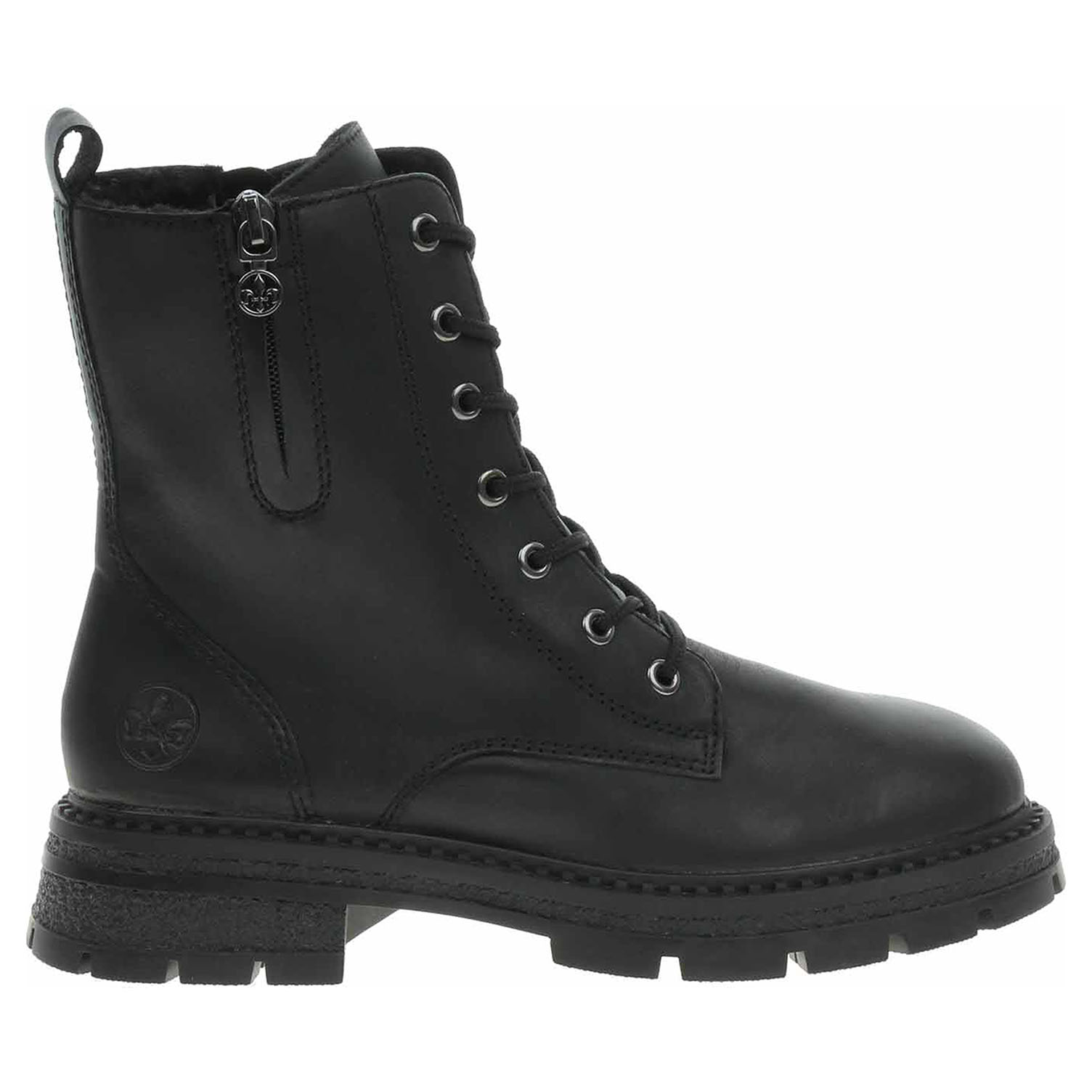 Boty Rieker - lepená dámská kotníková obuv se svrškem kombinovaným useň/syntetika a s textilní, vyndavací stélkou je vyteplená podšívkou ze střižní ovčí vlny s jemným chloupkem. Vyměnitelné vložky do bot je možné vyndat za účelem provětrání a omytí. Značnou výhodu nabízejí vyměnitelné vložky do bot také těm uživatelům, kteří používají ortopedické vkládací stélky. Pohodlné nazouvání zajišťuje šněrování a zip na vnitřní straně. Zip na vnější straně kotníku má pouze ozdobnou funkci. Podpatek je vysoký 4,1 cm a platforma je vysoká 2,5 cm. Podešev je flexibilní a díky systému Antistress skvěle tlumí nárazy a otřesy. Lepená obuv - pevnost lepeného spoje může být negativně ovlivněna promáčením nebo propocením, event. opakovaným používáním nedostatečně vysušené obuvi. Při neopatrné chůzi může dojít k mechanickému uvolnění lepeného spoje - ukopnutí.