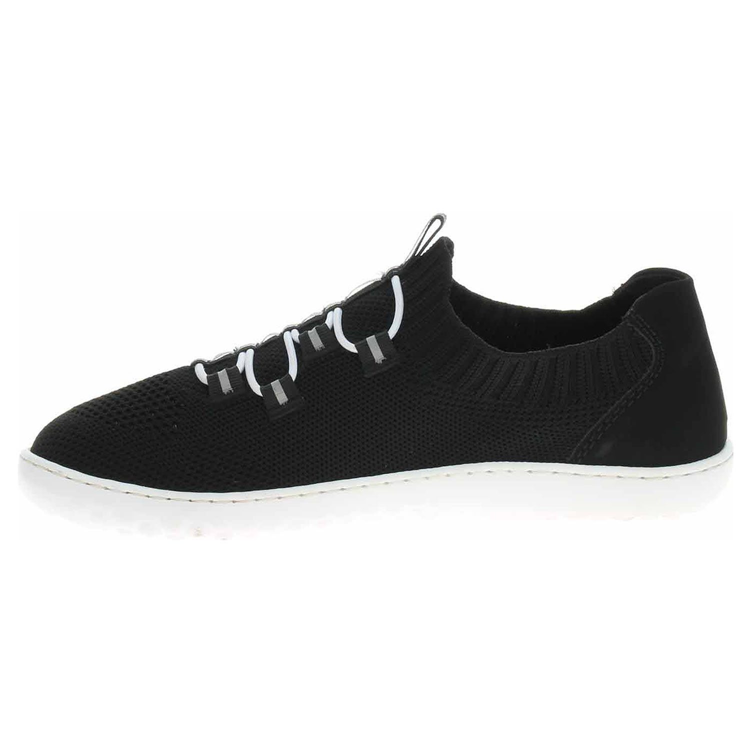 Boty Rieker - flexiblová dámská vycházková obuv s prodyšným svrškem kombinovaným textil/syntetika a se stélkou ze syntetiky je vybavená ultralehkou podešví Rieker-Lite. Pohodlné nazouvání zajišťuje ponožkový nástup do obuvi. Šněrováním je provlečená nekonečná gumička. Podešev je flexibilní a díky systému Antistress skvěle tlumí nárazy a otřesy. Klínek je vysoký 2,- cm. Obuv je 100% VEGAN = při výrobě obuvi nebyly použity žádné materiály ze zvířat. Flexiblová obuv - prošívaná podešev, obuv používejte v suchém prostředí. Při zvýšené vlhkosti může dojít k promáčení obuvi. Obuv pravidelně impregnujte nebo krémujte, zvláště pak prošívaný okraj.