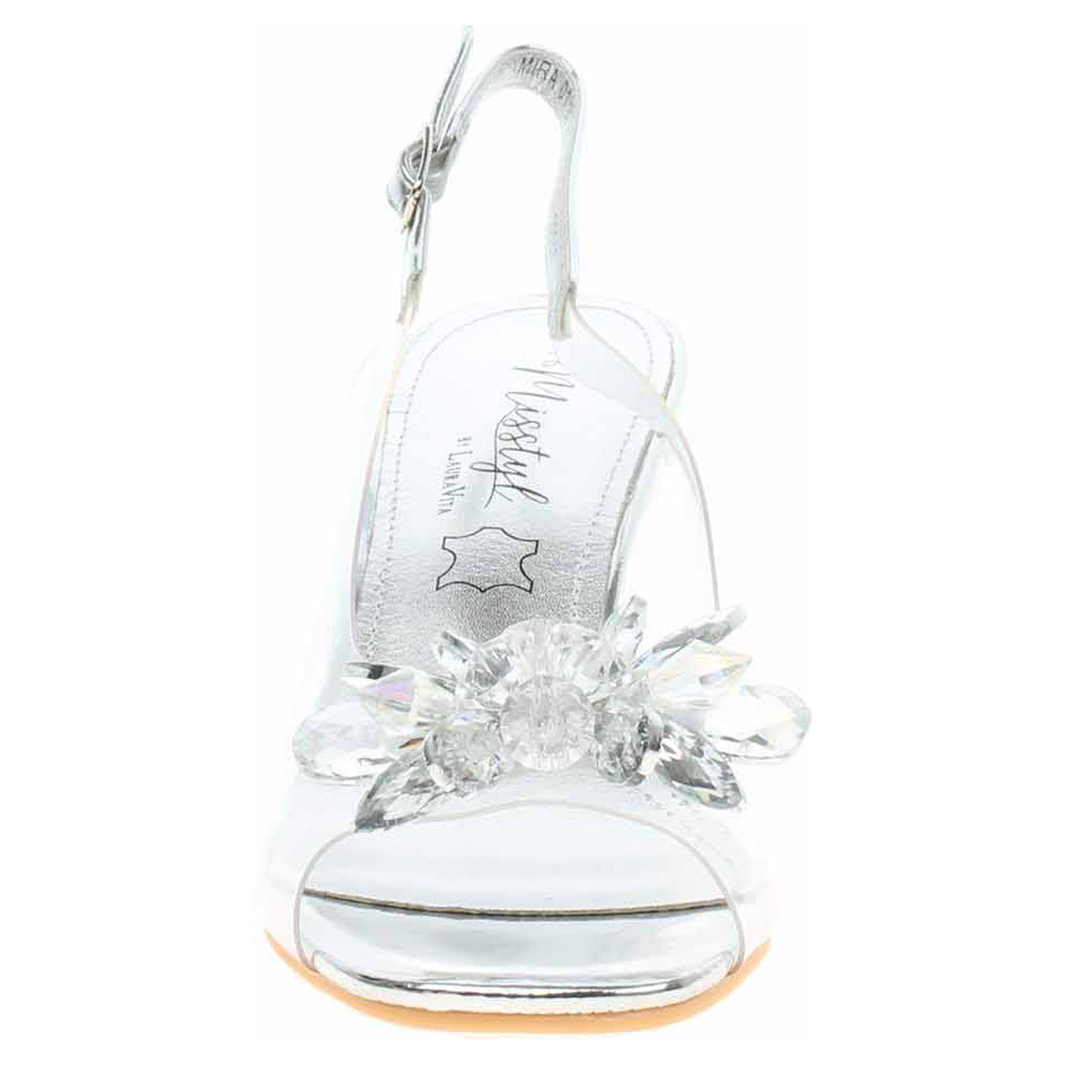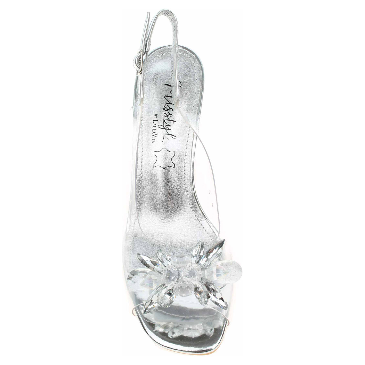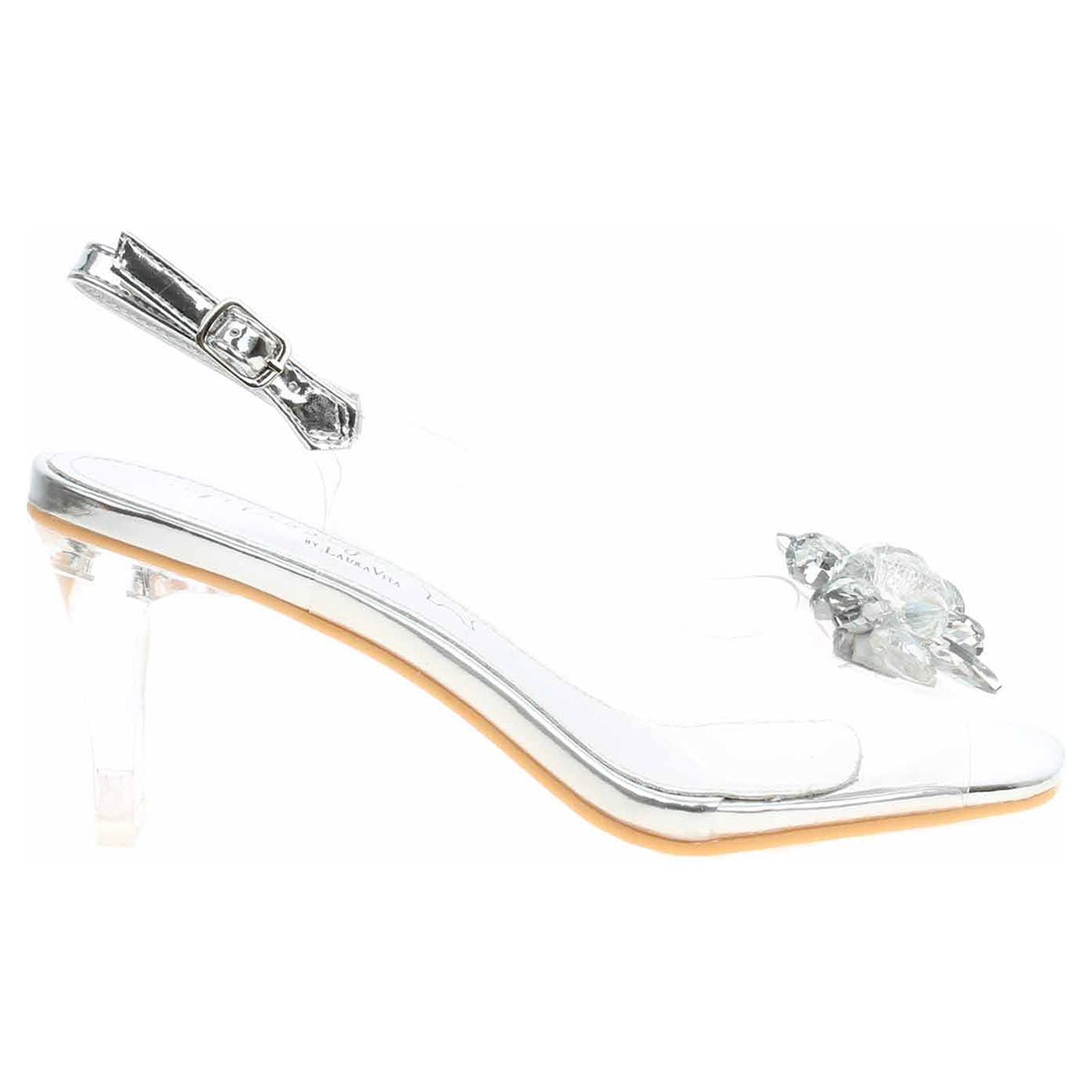 Laura Vita Mira 01 - společenská dámská obuv s transparentním svrškem ze syntetiky (PVC) a s paměťovou stélkou s nášlapnou vrstvou z usně má průhledný podpatek vysoký 7,- cm. Stélka Memory Foam se přizpůsobuje vašemu chodidlu a zajišťuje optimální komfort při chůzi. Pásek přes patu se zapíná na přezku. Společenská obuv - vhodná ke krátkodobému nošení v interiérech. Obuv nevystavujte vlhkosti.