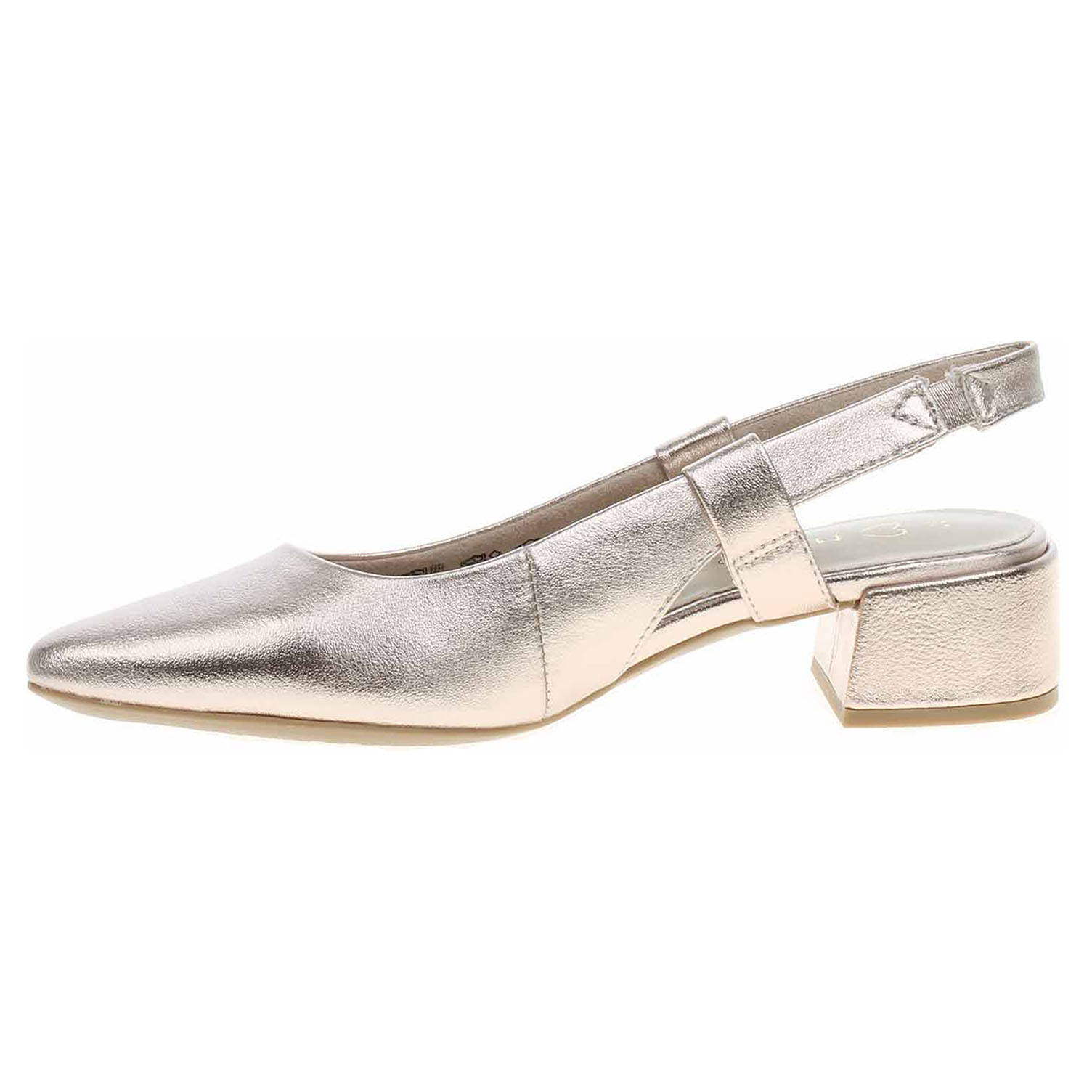 Boty Marco Tozzi - společenské dámské lodičky s volnou patou mají svršek ze syntetiky, textilní podšívku a jsou vybavené vyměkčenou stélkou Feel me ze syntetiky, která se přizpůsobuje vašemu chodidlu a zajišťuje optimální komfort při chůzi. Pohodlné nazouvání zajišťuje vsazená gumička na pásku přes patu. Podpatek je vysoký 4,5 cm. Obuv je 100% VEGAN = při výrobě obuvi nebyly použity žádné materiály ze zvířat. Společenská obuv - vhodná ke krátkodobému nošení v interiérech. Obuv nevystavujte vlhkosti.