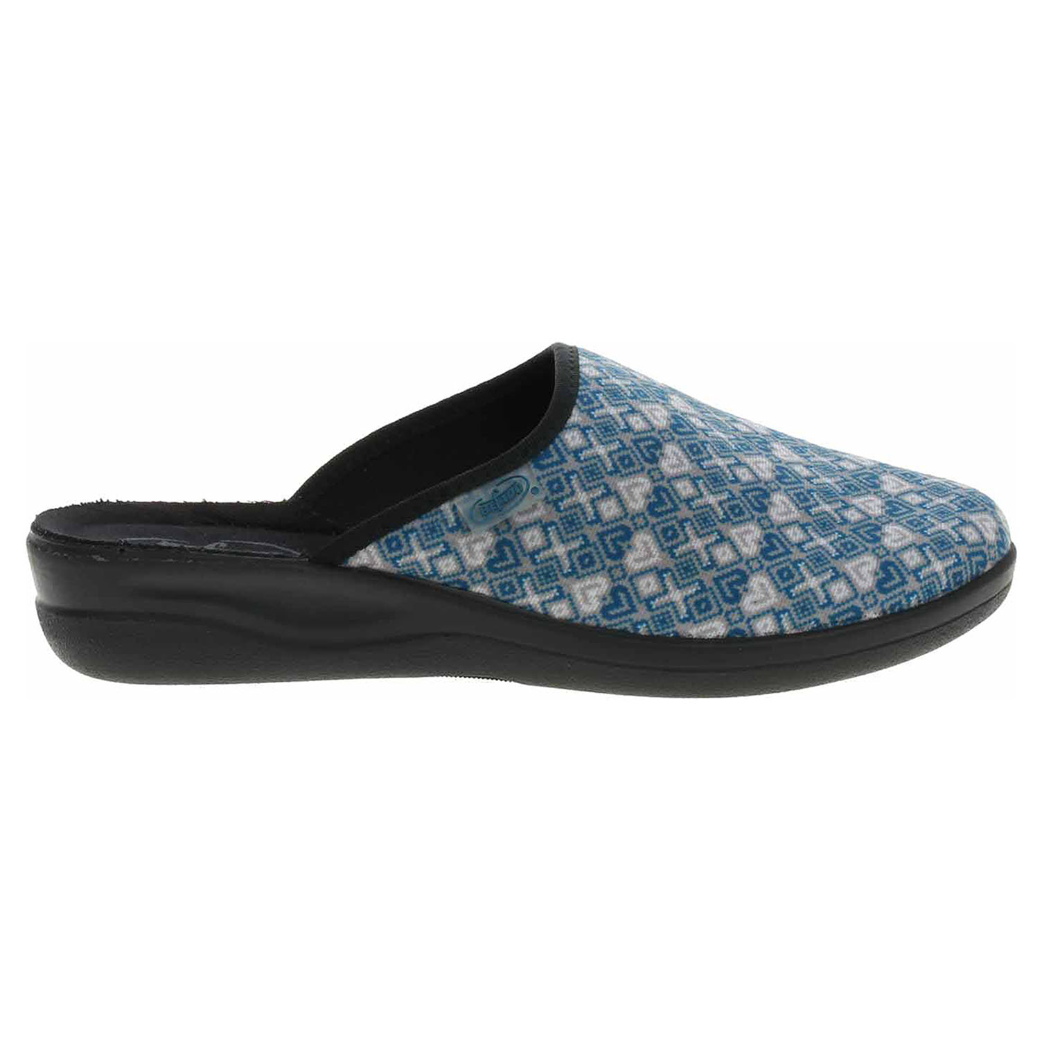 Boty Befado - dámské domácí pantofle s plnou špičkou na klínku vysokém 3,5 cm. Svršek, podšívka i stélka jsou textilní.
