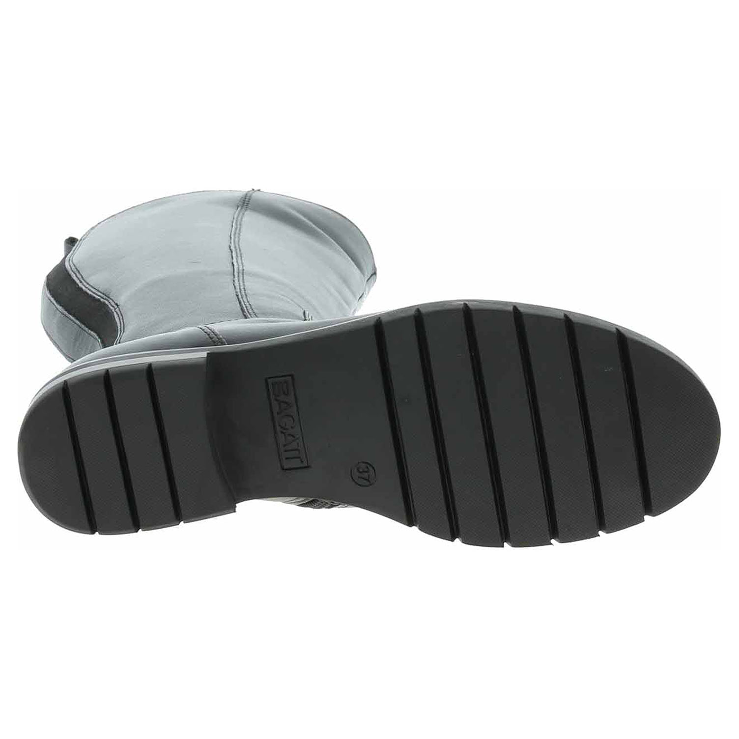 Boty Bagatt - lepené dámské kozačky vhodné pro středně široké lýtko velikosti M mají svršek z usně, textilní stélku a jsou vyteplené textilní podšívkou s chlupem. Obuv je vybavená Vario systémem (vsazené gumičky po celé výšce lýtka), který umožňuje částečné zvětšení objemu a přizpůsobení se tvaru lýtka. Pohodlné nazouvání zajišťuje zip na vnitřní straně. Podpatek je vysoký 3,5 cm a platforma je vysoká 1,5 cm. Lepená obuv - pevnost lepeného spoje může být negativně ovlivněna promáčením nebo propocením, event. opakovaným používáním nedostatečně vysušené obuvi. Při neopatrné chůzi může dojít k mechanickému uvolnění lepeného spoje - ukopnutí.