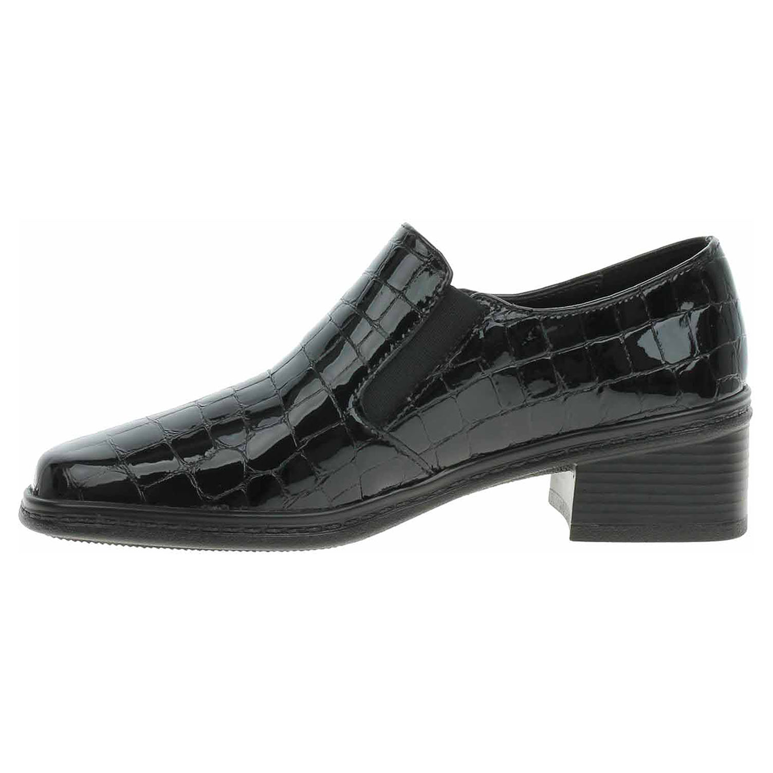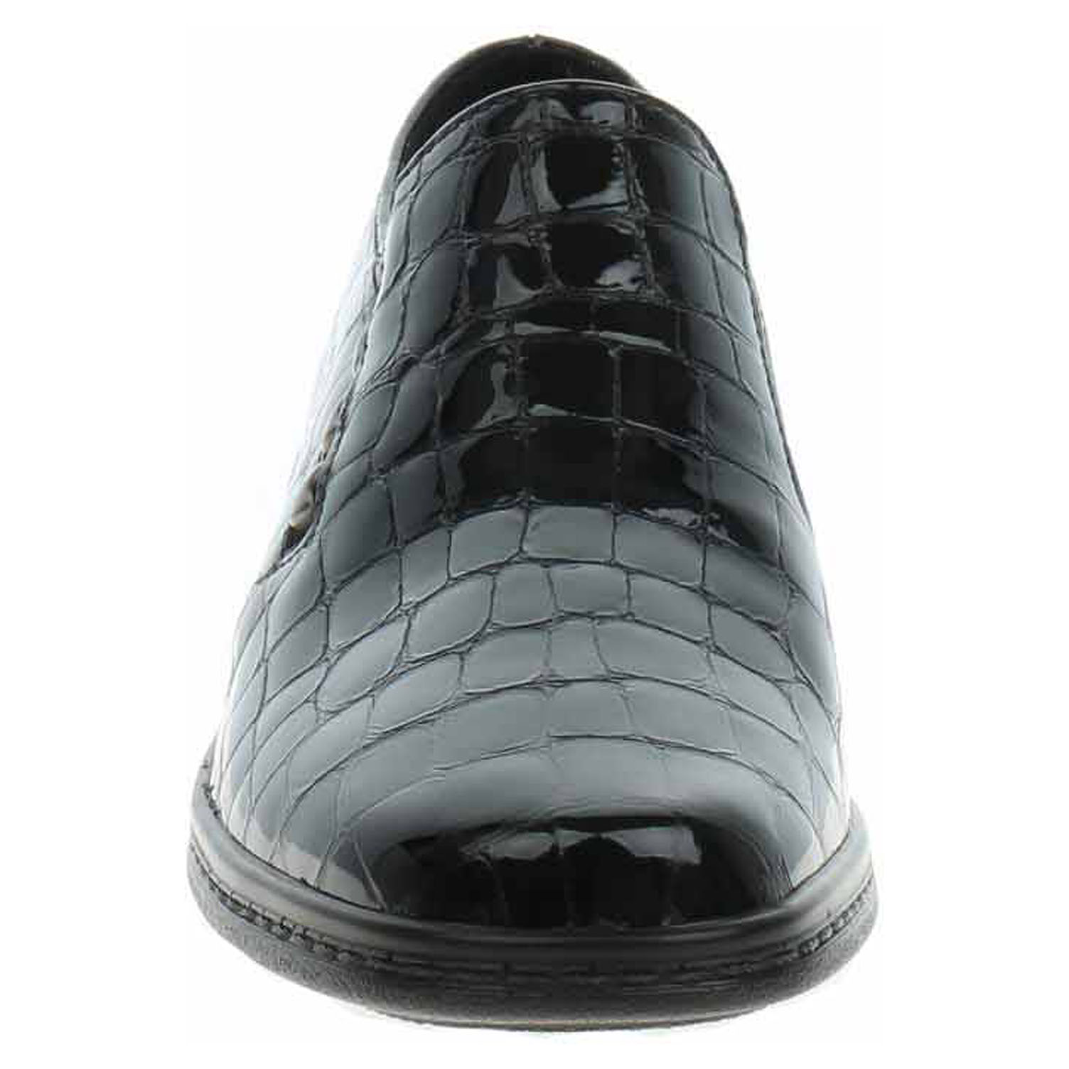 Boty Gabor - lakované dámské mokasiny šíře F se svrškem a stélkou z usně mají podpatek vysoký 4,- cm. Na vnitřní i vnější straně nártu jsou vsazené gumičky pro lepší nazutí. Lakovaná obuv - hladký, lesklý povrch je docílen lakovou úpravou. Povrch je choulostivý na mechanické poškození, rozmáčení a mráz. Ošetřujte prostředky na lakové usně.