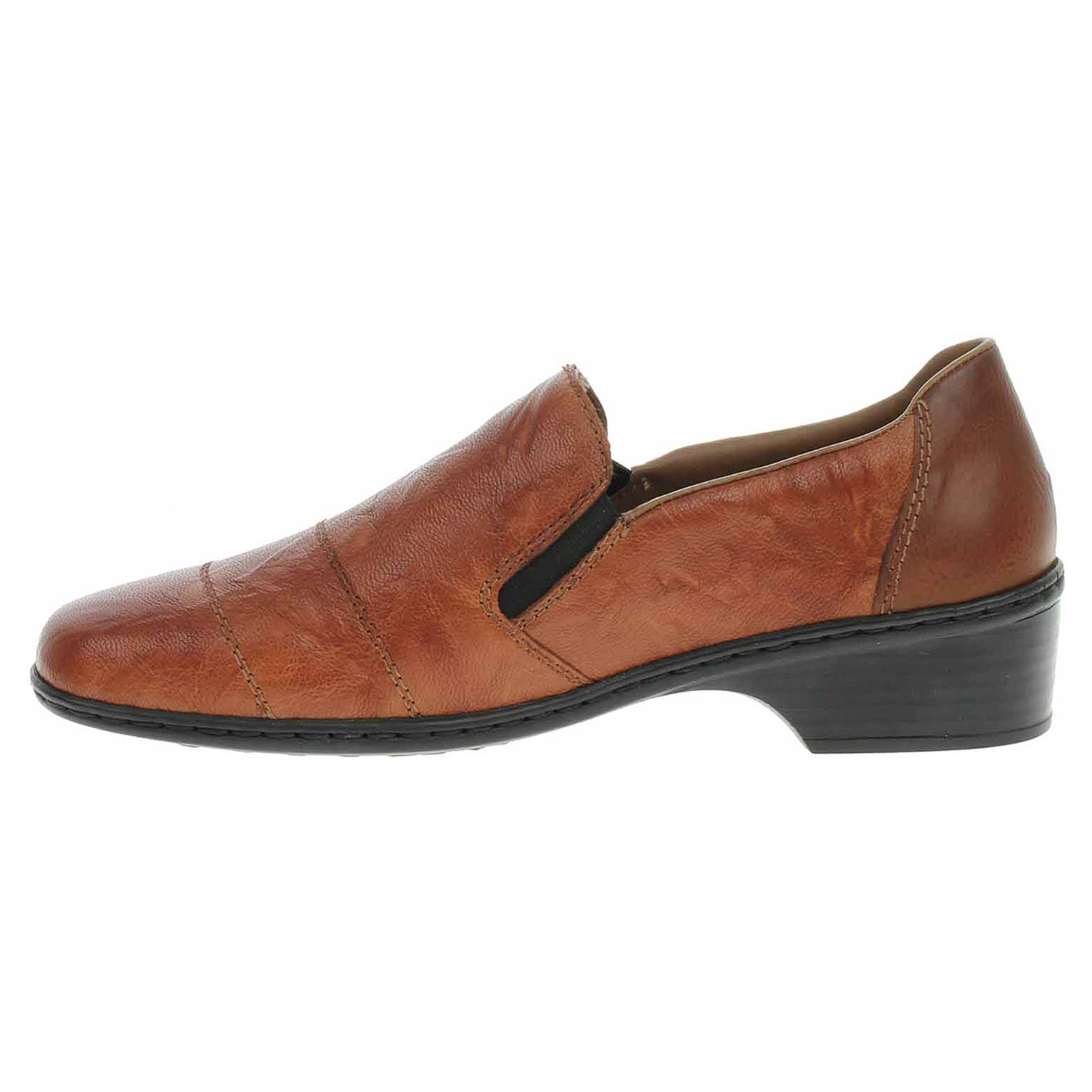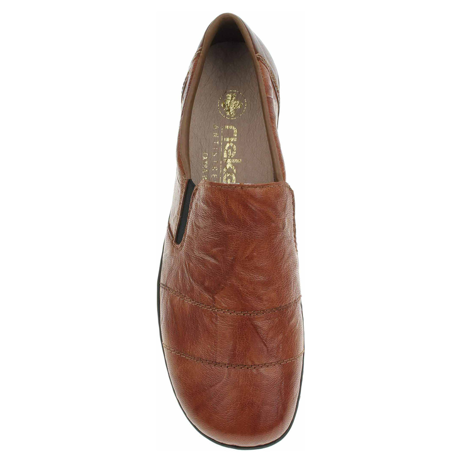Boty Rieker - flexiblové dámské mokasiny nadměrné šíře se svrškem a stélkou z usně jsou vybavené na vnější i na vnitřní straně nártu vsazenými gumičkami, které umožňují pohodlné nazouvání. Podpatek je vysoký 3,5 cm. Podešev je flexibilní a díky systému Antistress skvěle tlumí nárazy a otřesy. Flexiblová obuv - prošívaná podešev, obuv používejte v suchém prostředí. Při zvýšené vlhkosti může dojít k promáčení obuvi. Obuv pravidelně impregnujte nebo krémujte, zvláště pak prošívaný okraj.