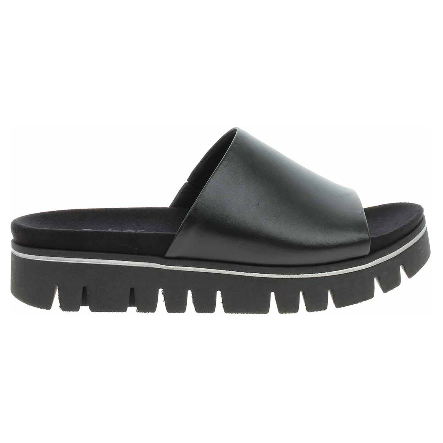 Boty Gabor Comfort - dámské pantofle se svrškem z usně a s textilní podšívkou i stélkou. Obuv je na vnitřní straně vybavená vsazenou gumičkou. Jedná se o obuv obzvláště pohodlné šířky G (větší šířka). To znamená, že tato obuv poskytuje více prostoru pro prsty, bříška palců a oblast nártu a tím i více nezbytného pohodlí. Klínek je vysoký 4,- cm a platforma je vysoká 2,- cm.