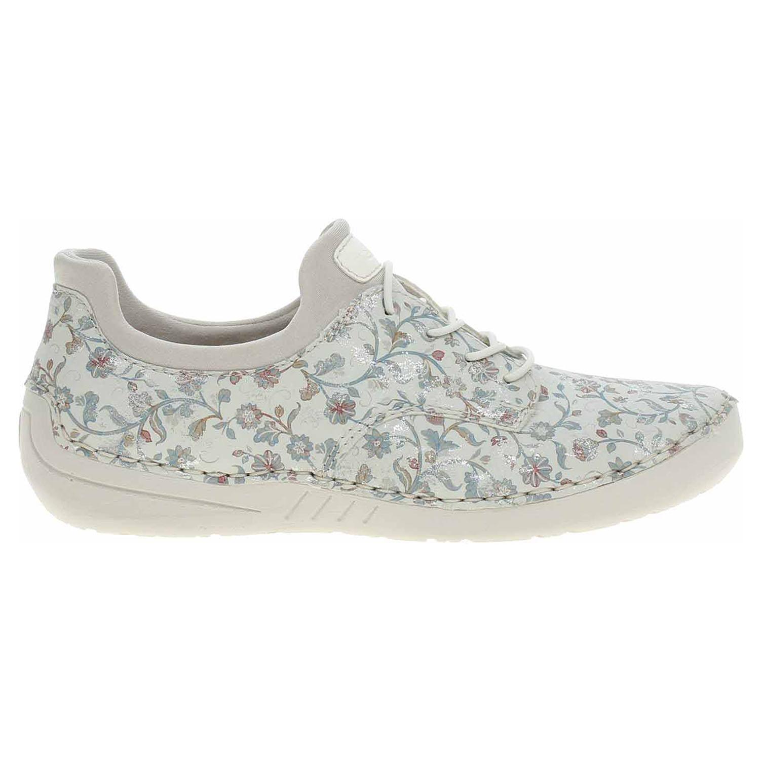 Boty Rieker - flexiblové dámské polobotky se svrškem ze syntetiky a s textilní podšívkou jsou vybavené vyměkčenou stélkou z usně. Pohodlné nazouvání zajišťuje textilní ponožkový nástup do obuvi. Šněrováním je provlečená nekonečná gumička, která zvyšuje stabilitu nohy v obuvi. Klínek je vysoký 2,7 cm. Podešev je flexibilní a díky systému Antistress (lehkosti + pružnost + prostornost a vynikající absorpce) skvěle tlumí nárazy a otřesy. Flexiblová obuv - prošívaná podešev, obuv používejte v suchém prostředí. Při zvýšené vlhkosti může dojít k promáčení obuvi. Obuv pravidelně impregnujte nebo krémujte, zvláště pak prošívaný okraj.