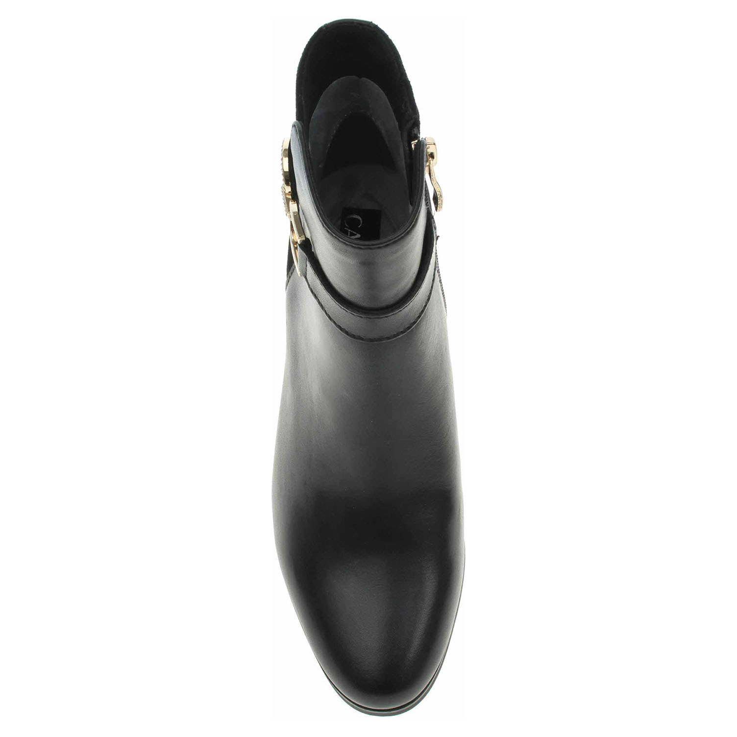 Boty Caprice - lepené dámské polokozačky se svrškem z hovězí usně ozdobeným sponou se štrasem a s podšívkou kombinovanou textil/syntetika jsou vybavené stélkou Memotion. Měkká, paměťová pěna ve stélce MEMOTION se ergonomicky přizpůsobí tvaru nohy. Po nošení se částečně vrací do původního tvaru. Chodidlo je opakovaně odpruženo a pohodlně zapuštěno. I v dynamice chůze funguje tlumicí funkce a tlumí tvrdé nárazy. Obuv je vyteplená textilní podšívkou s jemným chloupkem. Podpatek je vysoký 6,2 cm a díky systému Antishokk skvěle tlumí nárazy a otřesy. Antishokk je technologie, u které vzduchové komory a stabilizátory v jádře podpatku, zmírňují došlap o cca 50%. Zásluhou tohoto systému dochází k výraznému odlehčení kloubů a páteře. Lepená obuv - pevnost lepeného spoje může být negativně ovlivněna promáčením nebo propocením, event. opakovaným používáním nedostatečně vysušené obuvi. Při neopatrné chůzi může dojít k mechanickému uvolnění lepeného spoje - ukopnutí.