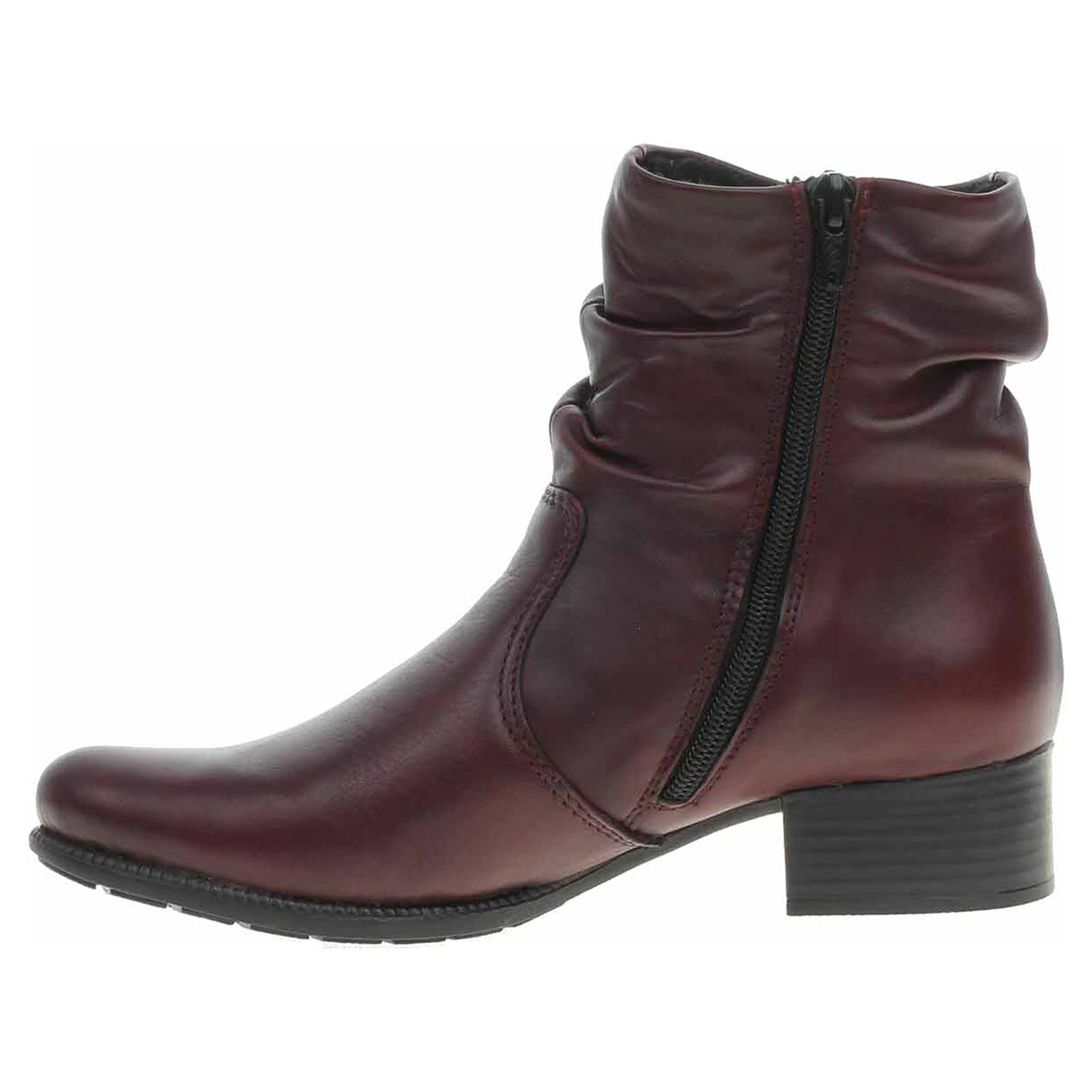 Boty Rieker - lepené dámské polokozačky šíře F se svrškem z usně a s textilní stélkou jsou vyteplené textilní podšívkou s jemným chloupkem. Pohodlné nazouvání zajišťují zipy na vnější i na vnitřní straně. Podpatek je vysoký 3,4 cm. Podešev je flexibilní a díky systému Antistress (lehkost, pružnost, prostornost a vynikající absorpce nárazů) Vám obuv zajistí pohodlí při každém kroku. Lepená obuv - pevnost lepeného spoje může být negativně ovlivněna promáčením nebo propocením, event. opakovaným používáním nedostatečně vysušené obuvi. Při neopatrné chůzi může dojít k mechanickému uvolnění lepeného spoje - ukopnutí.