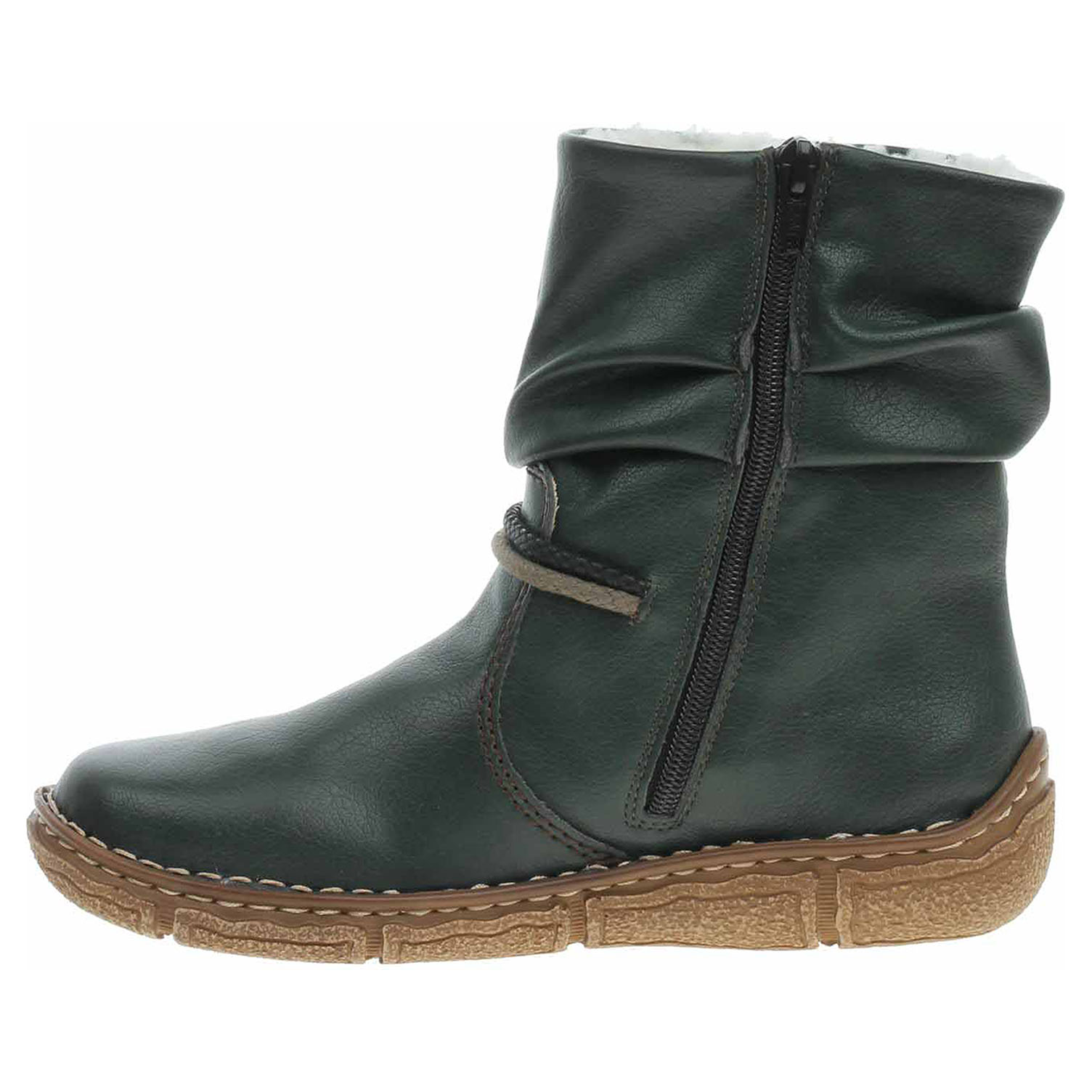Boty Rieker - flexiblové dámské polokozačky se zipem na vnitřní straně mají svršek ze syntetiky a jsou vyteplené textilní podšívkou s chlupem. Klínek je vysoký 3,- cm a platforma je vysoká 1,5 cm. Podešev je flexibilní a díky systému Antistress skvěle tlumí nárazy a otřesy. Flexiblová obuv - prošívaná podešev, obuv používejte v suchém prostředí. Při zvýšené vlhkosti může dojít k promáčení obuvi. Obuv pravidelně impregnujte nebo krémujte, zvláště pak prošívaný okraj.
