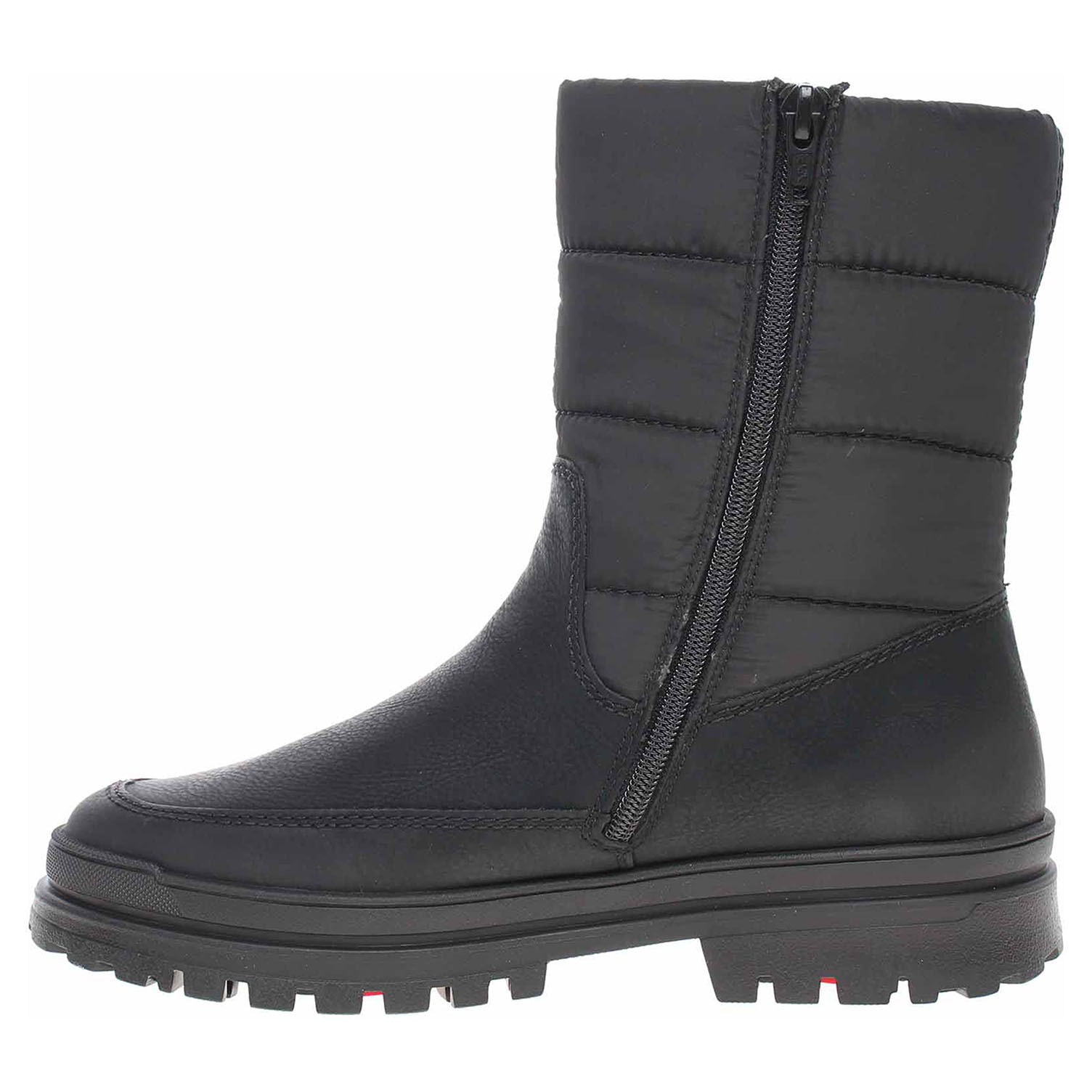 Boty Rieker - lepené dámské polokozačky se zipem jsou vybavené vodoodpudivou membránou RiekerTex, vyndavací stélkou a v podešvi OC System Tipper. Pokud je venku příliš kluzko, jednoduše otočte flip s hroty a sníh a led Vás nechají zcela chladnými. Tento systém je inovativním řešením pro procházky na sněhu i na ledu. Použití protiskluzového systému zvyšuje přilnavost boty, díky čemuž je krok pohodlný a stabilní na jakémkoli povrchu pokrytém ledem.