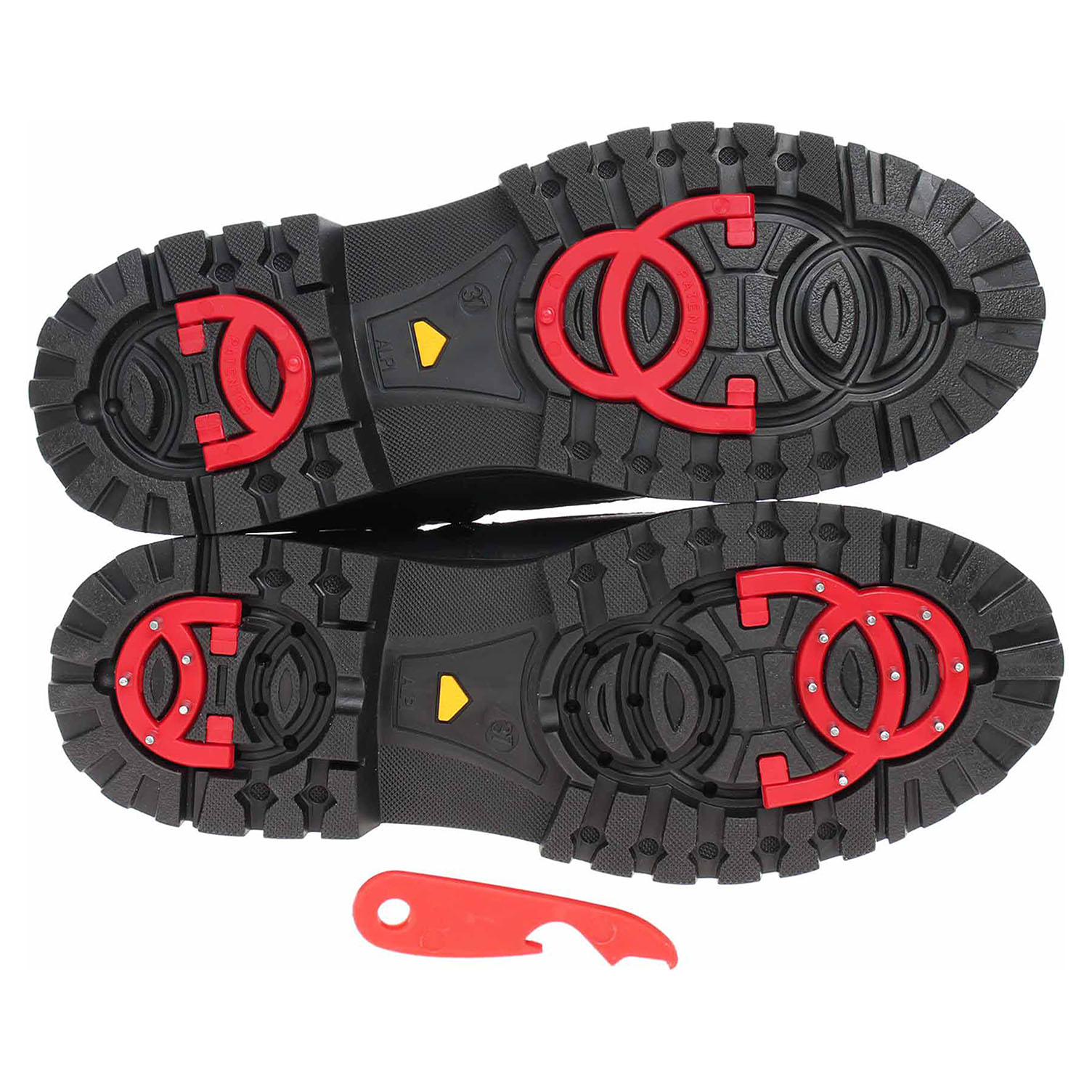 OCsystem® je během výroby ukotven k podešvi a stává se její nedílnou součástí. Systém se skládá z rámu vyrobeného ze speciálního polyuretanu, který zachovává vlastnosti pružnosti a odolnosti i při extrémních teplotách, což je struktura, na které jsou hřebíky z nerezové oceli. Nabízíme Vám stabilitu s patentovaným grip systémem, který máte vždy na botě! Otočné hroty působí proti uklouznutí na sněhu a ledu! S 180° otočným flipem sklopíte hroty a na ledově hladkých površích jste stabilní. Nejprve flip – pak grip! Obuv se svrškem kombinovaným syntetika/textil je vyteplená textilní podšívkou s chlupem. Podpatek je vysoký 3,5 cm. Podešev je flexibilní a díky systému Antistress (lehkost, pružnost, prostornost a vynikající absorpce nárazů) Vám obuv zajistí pohodlí při každém kroku. Lepená obuv - pevnost lepeného spoje může být negativně ovlivněna promáčením nebo propocením, event. opakovaným používáním nedostatečně vysušené obuvi. Při neopatrné chůzi může dojít k mechanickému uvolnění lepeného spoje - ukopnutí.
