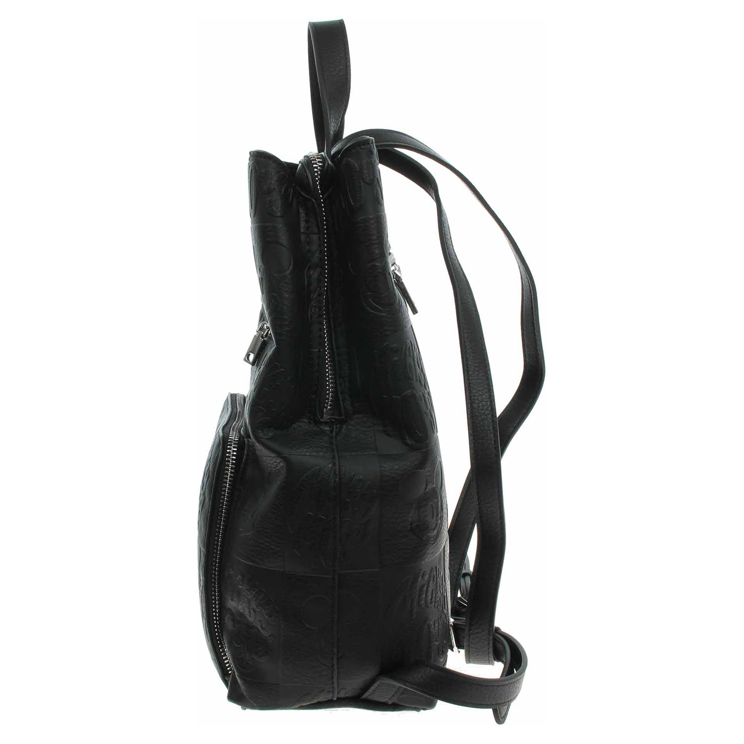 Desigual All Mickey Sumy - dámský tříkomorový batoh s reliéfy Mickey Mouse a s přívěškem na klíče na karabince je vyrobený ze syntetiky (100% polyuretan) a podšívka je textilní (100% polyester). Prostřední komora se zapíná na zip, zadní na magnet a přední na otočný záměček. Na přední straně se nachází dvě pohotovostní kapsy se zipem a rovněž jedna kapsa na zádech. Batoh je možno nosit na zádech na regulovatelných popruzích nebo v ruce za ucho. Rozměry: 32 x 11 x 27 cm. Vnitřní výbava: 1x kapsa se zipem. Laptop Friendly. Licence: Disney™.