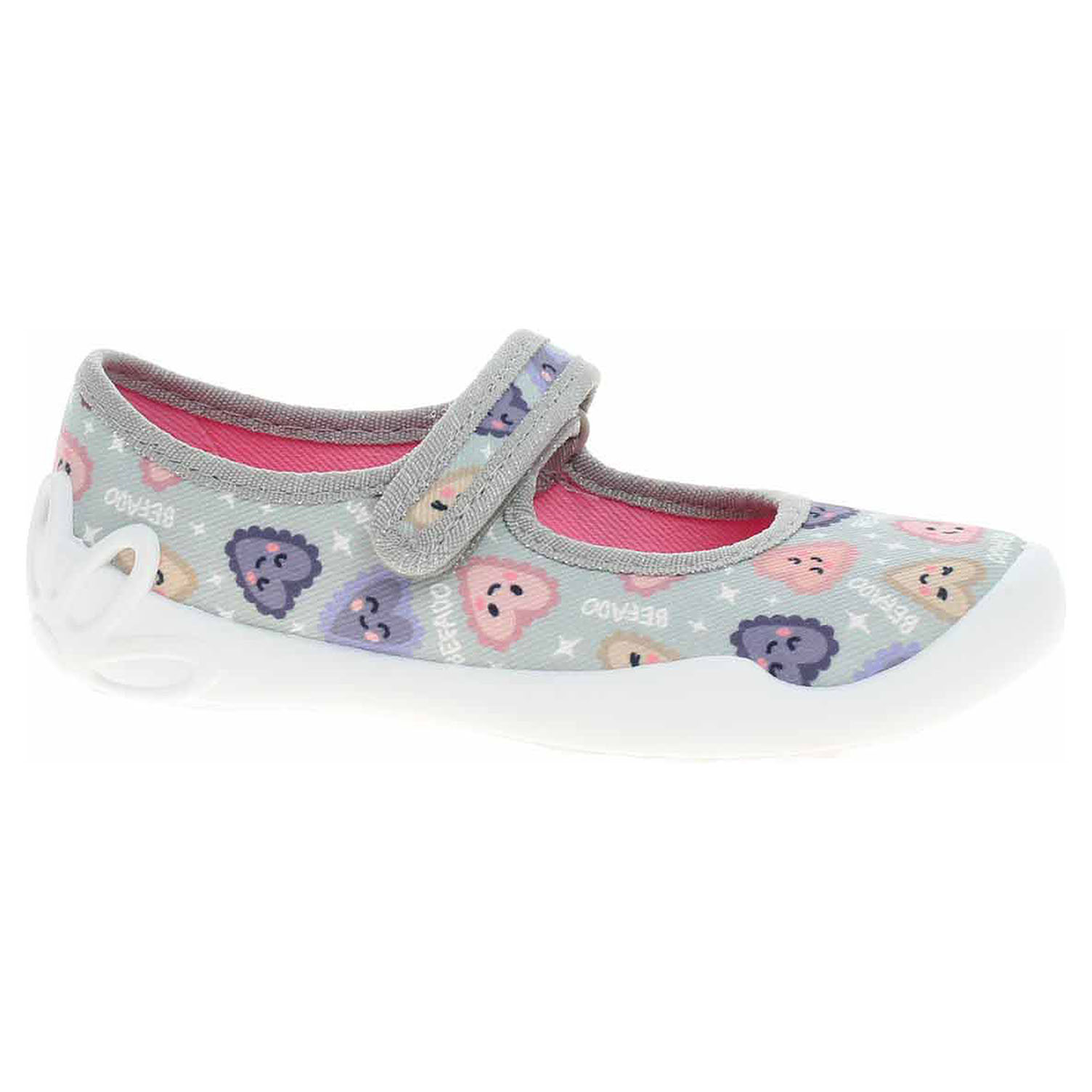 Boty Befado - dívčí domácí bačkory s textilním svrškem, podšívkou i stélkou jsou vybavené dýchající podešví. Pásek přes nárt, který se zapíná na suchý zip, zajišťuje pohodlné nazouvání a stabilitu nohy v obuvi. Dětská obuv - je vzhledem ke způsobu užívání vystavena většímu mechanickému poškození - okopání. Mechanické poškození není důvodem k reklamaci.