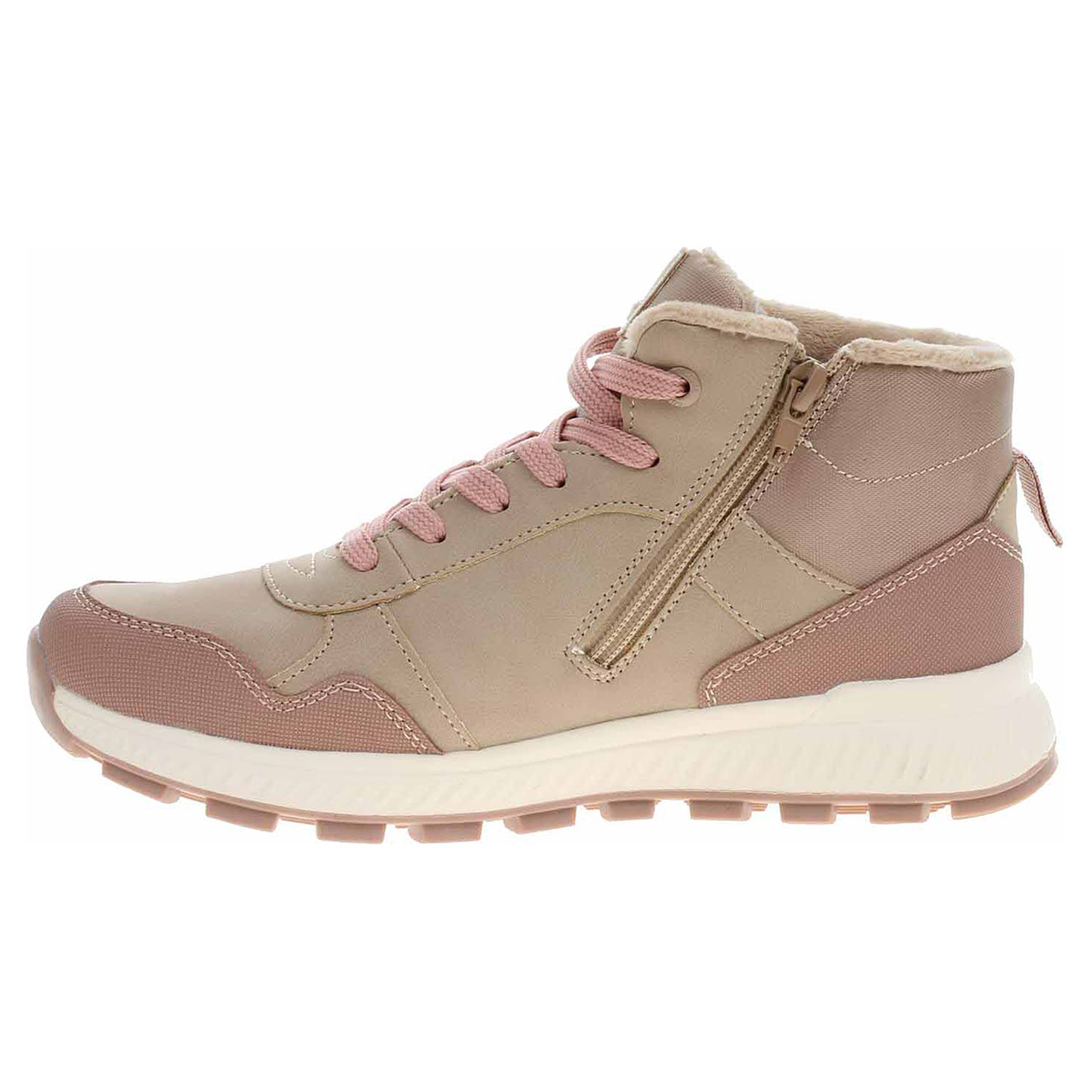 Boty s.Oliver - lepené dívčí kotníkové se svrškem kombinovaným syntetika/textil a s textilní podšívkou s chlupem jsou vybavené vodoodpudivou Tex membránou a vyndavací stélkou Soft Foam, která se přizpůsobuje chodidlu a zajišťuje optimální komfort při chůzi. Vyměnitelné vložky do bot je možné vyndat za účelem provětrání a omytí. Značnou výhodu nabízejí vyměnitelné vložky do bot také těm uživatelům, kteří používají ortopedické vkládací stélky. Pohodlné nazouvání zajišťuje šněrování a zip na vnitřní straně. Lepená obuv - pevnost lepeného spoje může být negativně ovlivněna promáčením nebo propocením, event. opakovaným používáním nedostatečně vysušené obuvi. Při neopatrné chůzi může dojít k mechanickému uvolnění lepeného spoje - ukopnutí.