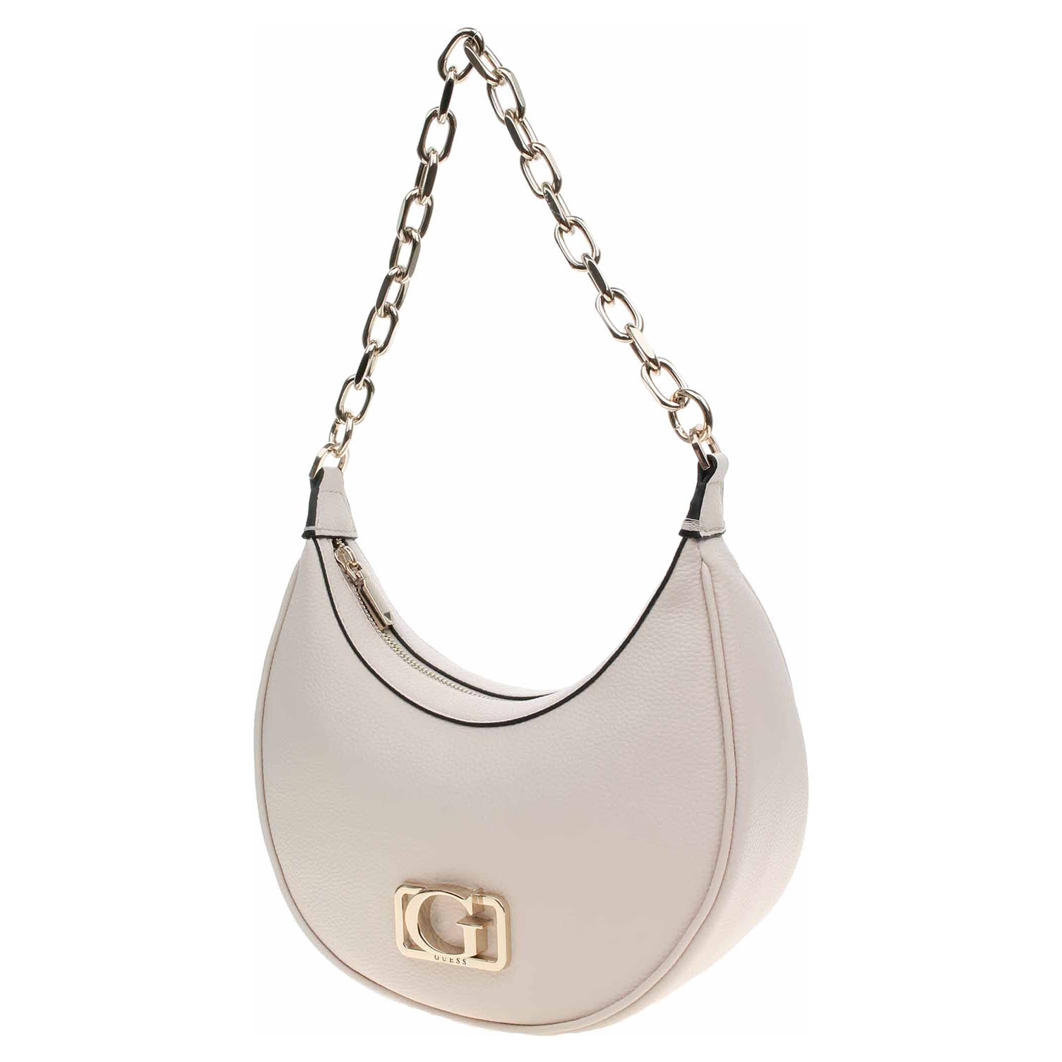 Guess - dámská kabelka ze syntetického materiálu a s textilní podšívkou má rozměry 25 x 24 x 11 cm. Kabelka s logem na přední straně, kterou je možno nosit v ruce na řetízku a nebo přes rameno na regulovatelném, odepínatelném popruhu, se zapíná na zip a na zadní straně je vybavená kapsou se zipem. Vnitřní výbava: 1x kapsa se zipem, 6x přihrádka na platební karty.