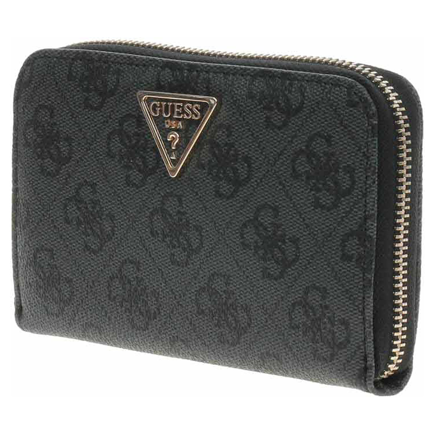 Guess - dámská peněženka ze 100% polyuretanu a s podšívkou ze 100% polyesteru se zapíná na zip. Vnitřní výbava: přihrádky na bankovky a na karty a kapsička na mince, která se zapíná na zip. Rozměry - 14 x 9 x 2,5 cm. Dárkové balení v originální krabičce.