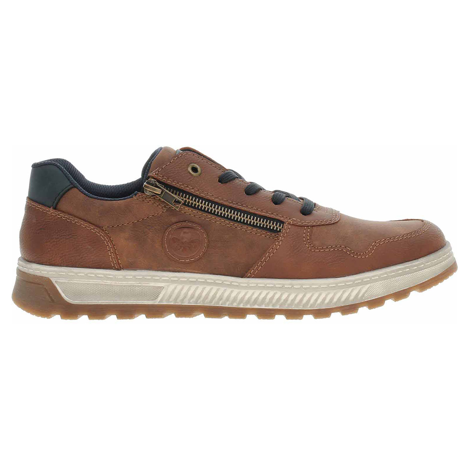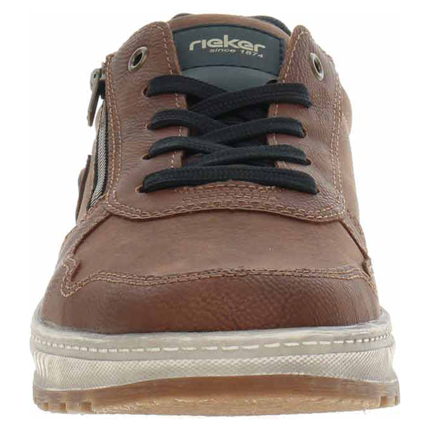 Boty Rieker - lepená pánská vycházková obuv nadměrné šíře se svrškem ze syntetiky a s textilní podšívkou i stélkou. Obuv se šněrováním je na vnější straně nártu vybavená zipem, který usnadňuje nazouvání. Podešev je flexibilní a díky systému Antistress (lehkost, pružnost, prostornost a vynikající absorpce nárazů) Vám obuv zajistí pohodlí při každém kroku. EXTRA WIDE – boty jsou širšího střihu, tvar boty je přizpůsoben chodidlu pro vytvoření dostatečného prostoru v oblasti přední části chodidla. Klínek je vysoký 3,4 cm. Lepená obuv - pevnost lepeného spoje může být negativně ovlivněna promáčením nebo propocením, event. opakovaným používáním nedostatečně vysušené obuvi. Při neopatrné chůzi může dojít k mechanickému uvolnění lepeného spoje - ukopnutí.