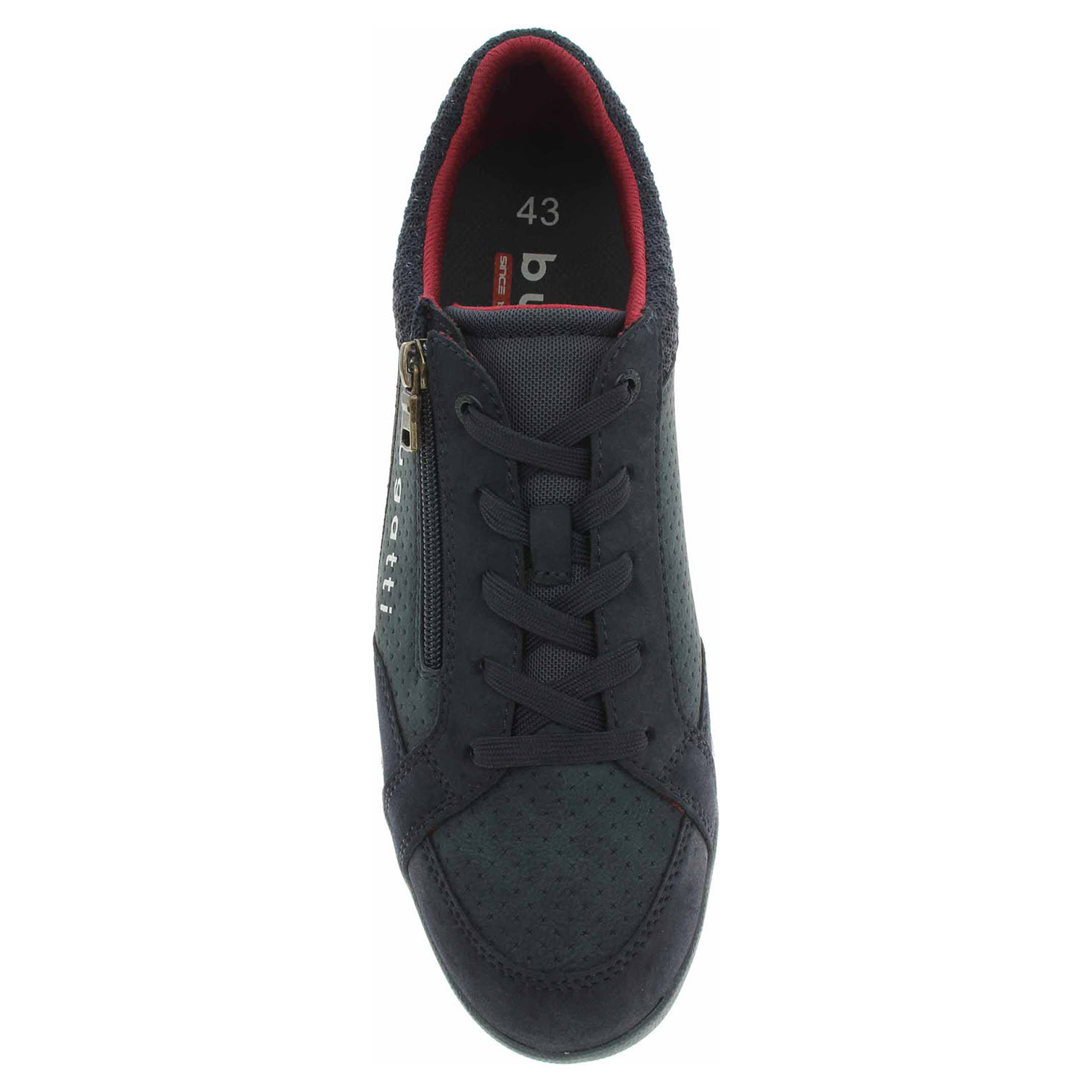 Boty Bugatti - lepené pánské polobotky se svrškem kombinovaným syntetika/textil a s textilní podšívkou (100% polyester) i stélkou. Pohodlné nazouvání zajištuje šněrování a zip na vnější straně nártu. Klínek je vysoký 2,5 cm. Lepená obuv - pevnost lepeného spoje může být negativně ovlivněna promáčením nebo propocením, event. opakovaným používáním nedostatečně vysušené obuvi. Při neopatrné chůzi může dojít k mechanickému uvolnění lepeného spoje - ukopnutí.