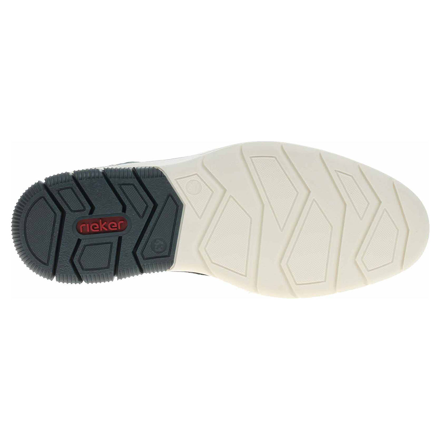 Boty Rieker - lepené pánské polobotky se svrškem kombinovaným syntetika/textil, s textilní podšívkou a s vyměkčenou stélkou s nášlapnou vrstvou z usně. Špička obuvi je perforovaná. Pohodlné nazouvání zajišťuje textilní ponožkový nástup do obuvi. Šněrováním je provlečená nekonečná gumička. Klínek je vysoký 3,5 cm. Podešev je flexibilní a díky systému Antistress skvěle tlumí nárazy a otřesy. Lepená obuv - pevnost lepeného spoje může být negativně ovlivněna promáčením nebo propocením, event. opakovaným používáním nedostatečně vysušené obuvi. Při neopatrné chůzi může dojít k mechanickému uvolnění lepeného spoje - ukopnutí.