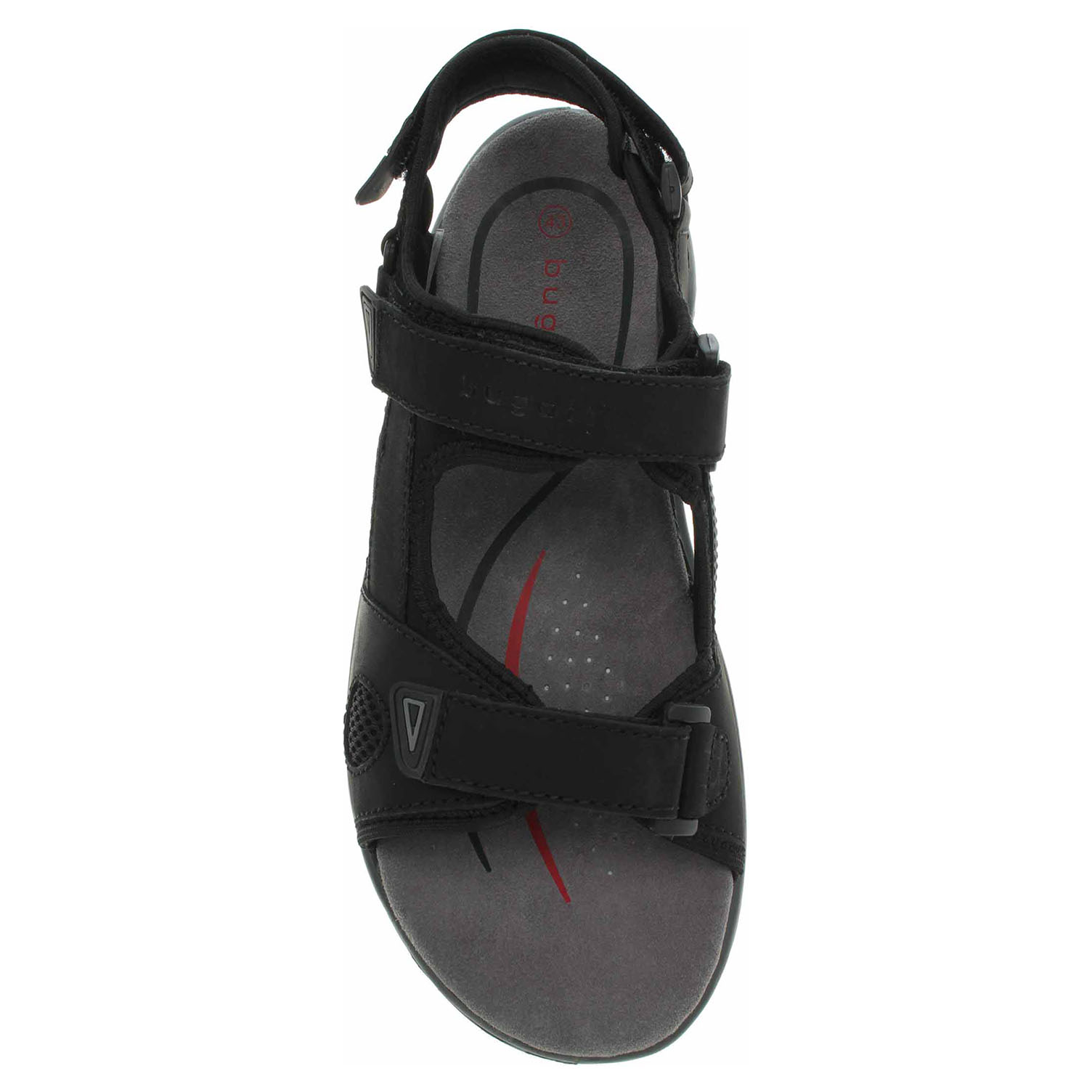Boty Bugatti - pánské sandály se svrškem z usně a s textilní podšívkou (100% polyester) mají tvarovanou stélku s nášlapnou vrstvou z usně. Pásky přes nárt a přes patu se zapínají na suché zipy. Klínek je vysoký 2,5 cm.