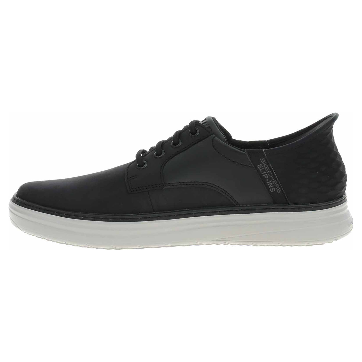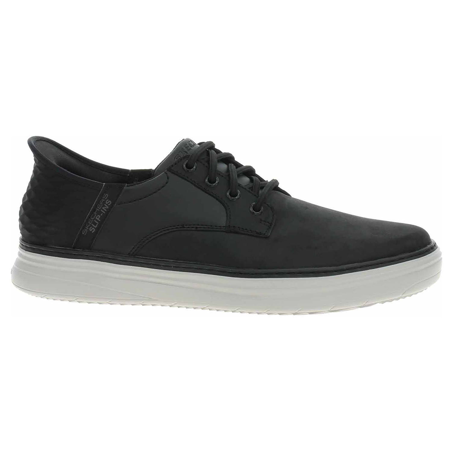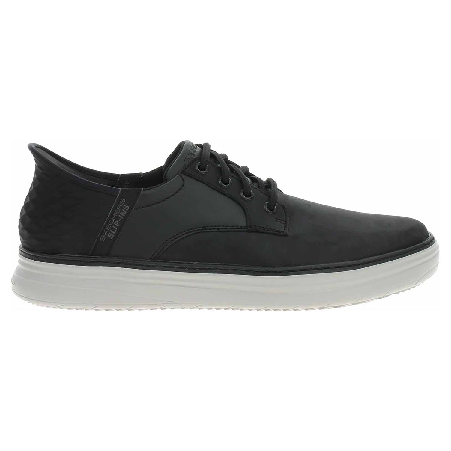 Skechers Slip-ins: Sport Court 92 - Distown - lepené pánské polobotky se svrškem kombinovaným useň/syntetika a s textilní podšívkou i stélkou Skechers Air-Cooled Memory Foam® jsou pro snadné nošení vybavené tvarovaným patním panelem Skechers Slip-ins™, který umožňuje nazutí i vyzutí obuvi bez použití rukou. Exkluzivní polštářek Heel Pillow™ drží vaši nohu bezpečně na místě. Flexibilní trakční podrážka má klínek vysoký 3,2 cm. Lepená obuv - pevnost lepeného spoje může být negativně ovlivněna promáčením nebo propocením, event. opakovaným používáním nedostatečně vysušené obuvi. Při neopatrné chůzi může dojít k mechanickému uvolnění lepeného spoje - ukopnutí.