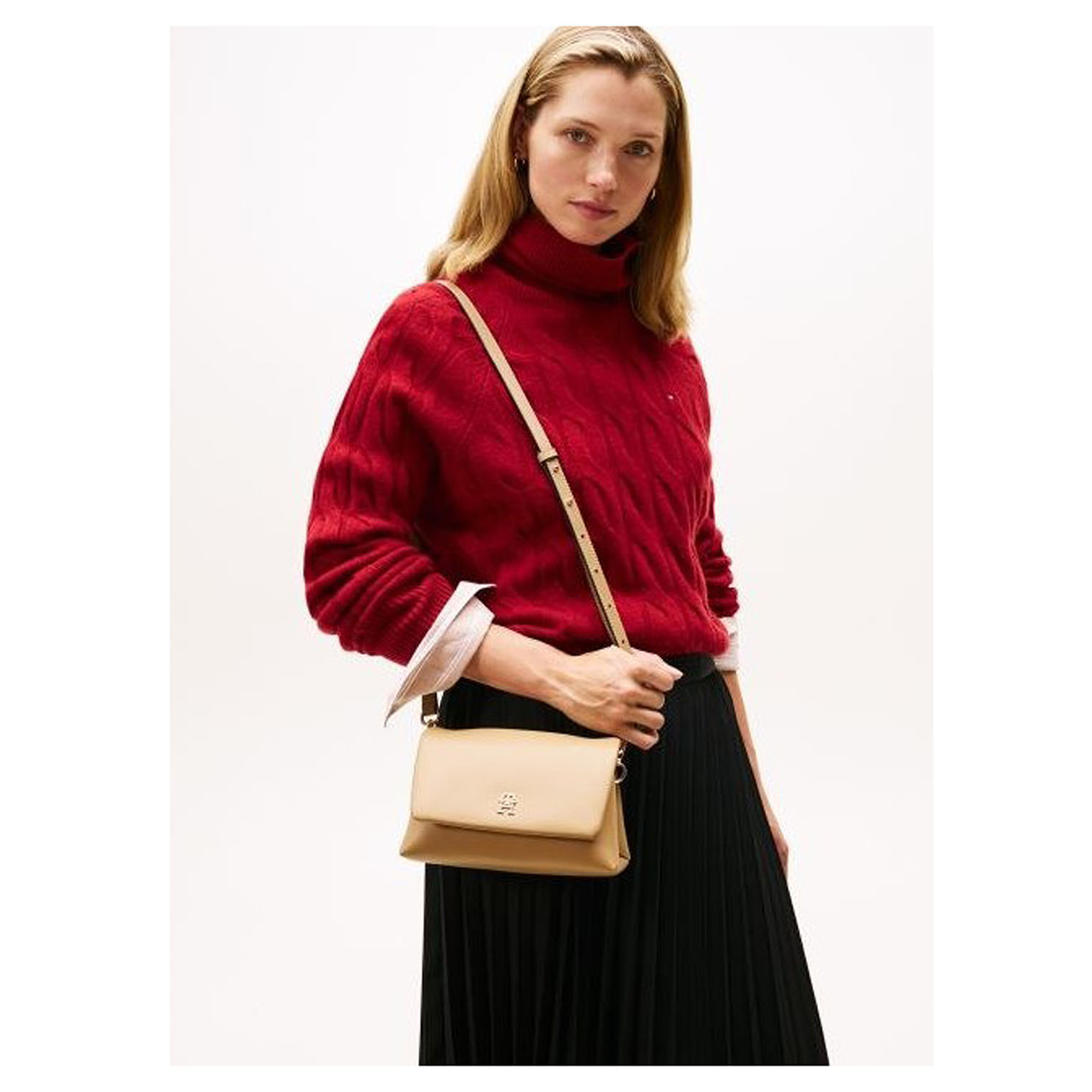 Tommy Hilfiger - dámská klopnová kabelka (dvoukomorová) ze syntetiky (51 % polyester, 49 % polyuretan) se zapínáním na magnet. Tato crossbody kabelka s monogramem TH na přední straně je luxusním doplňkem pro denní i večerní nošení a vyznačuje se elegantním a kompaktním designem pro uložení vašich nezbytností. Rozměry - 20 x 10 x 12 cm. Objem - 1,3 l. Kabelku je možné nosit přes rameno nebo crossbody na regulovatelném popruhu s karabinkami, který se dá odepnout. Vnitřní výbava: dvě komory, v zadní komoře 1x kapsa se zipem.